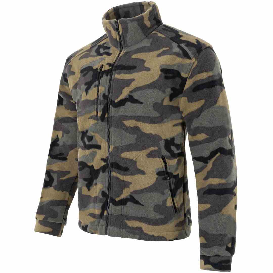 Bluza wykonana z POLARU. Polar z wykończeniem antypilingowym. Polar jest gruby i posiada bardzo dobre właściwości cieplne, przyjemny w dotyku, 2 kieszenie zasuwane zamkami błyskawicznymi oraz dodatkowa kieszeń na piersi z zamkiem. W dolnej częśći możliwa regulacja na gume ze stoperami. Bluza w kolorze Camuflage, . Możliwe zastosowanie dowolnej kolorystyki i łączenia kolorów w produkcje: