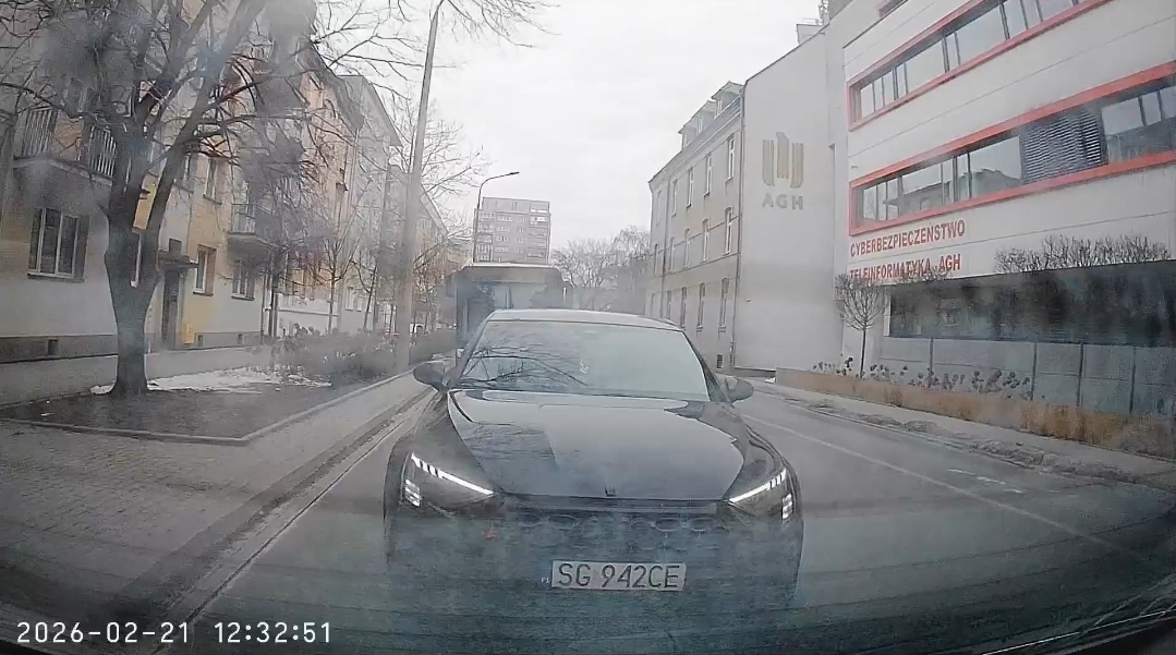 Głupek ze stopcham nagrany podczas blokowania i hamowania awaryjnego w Tarnowie