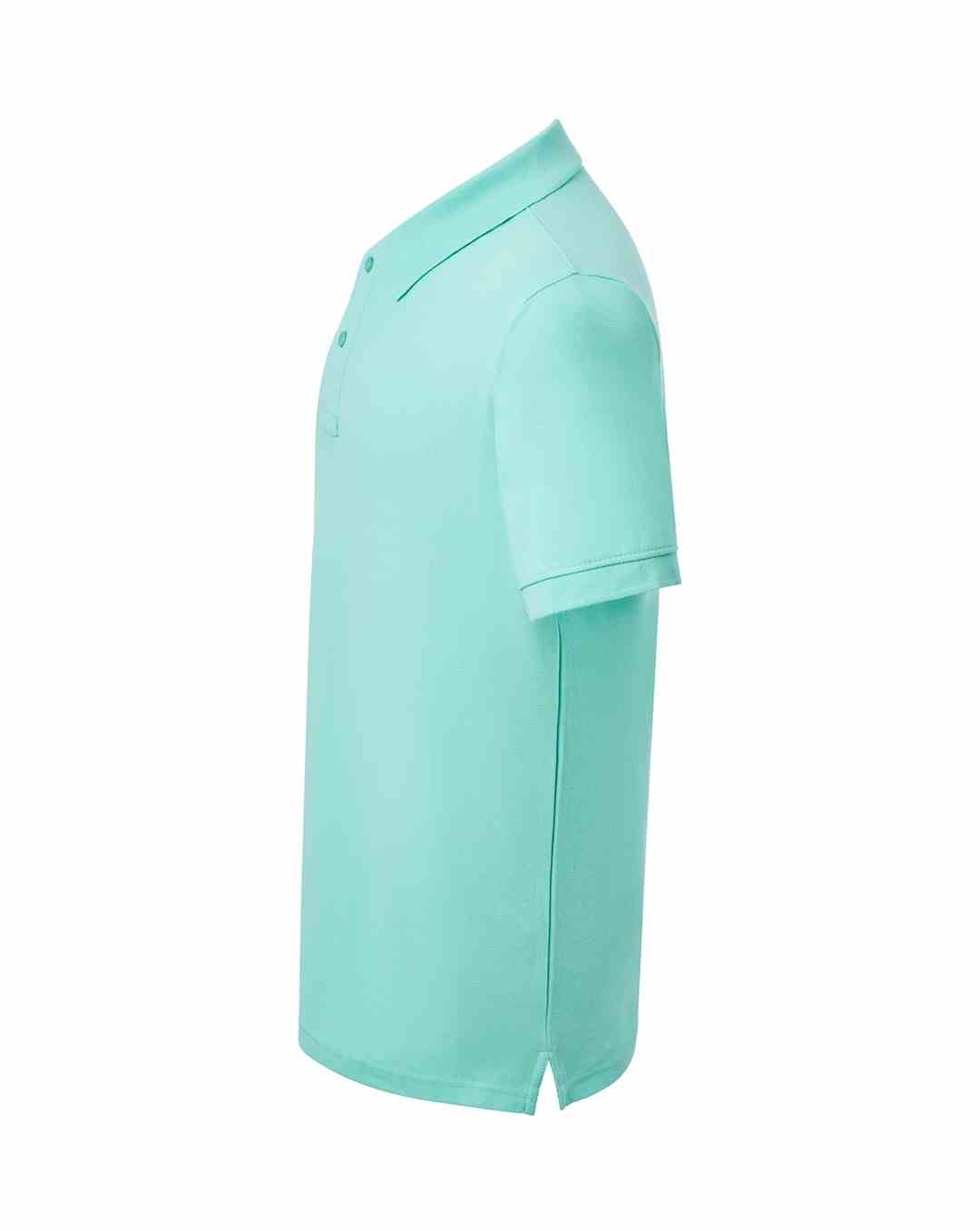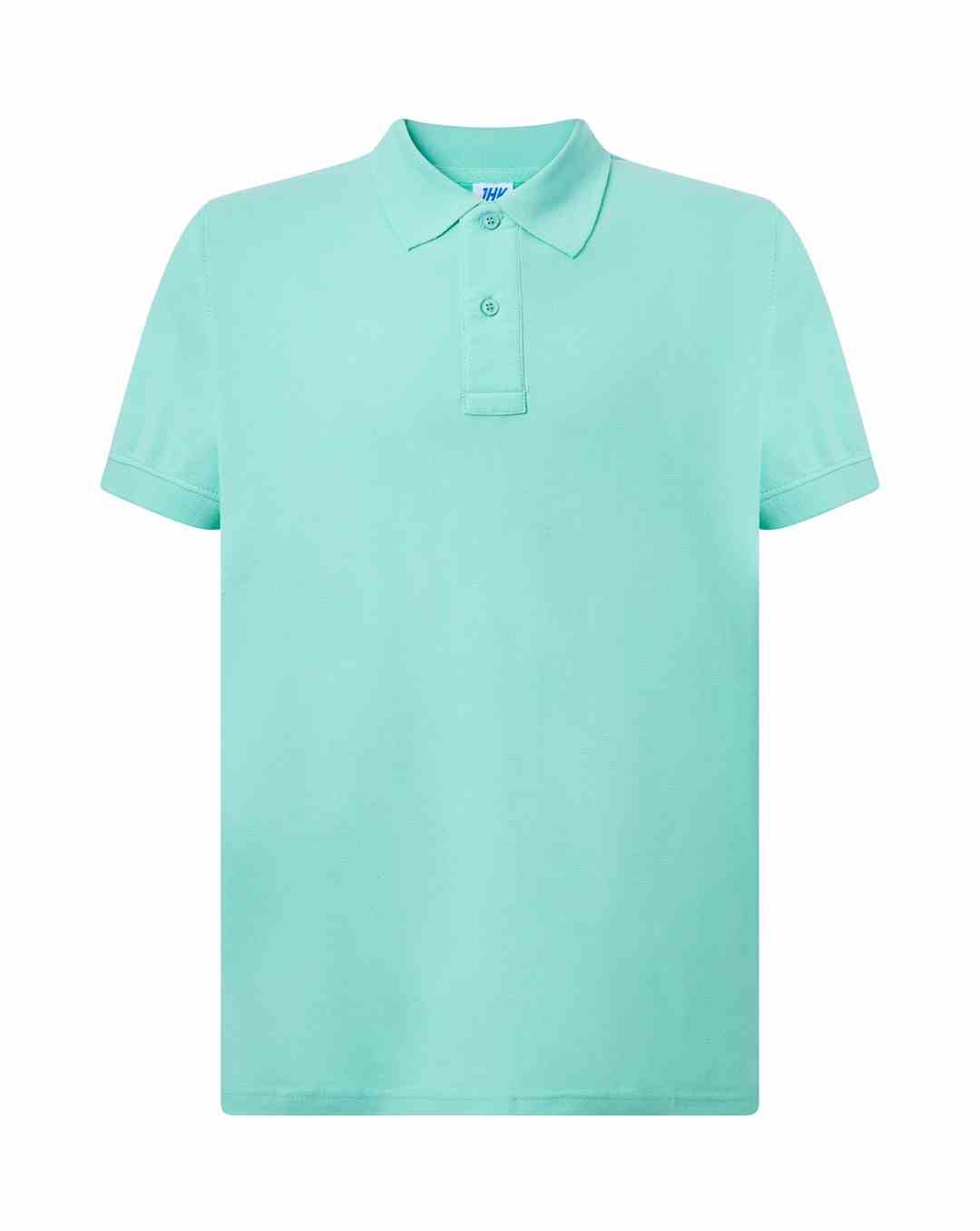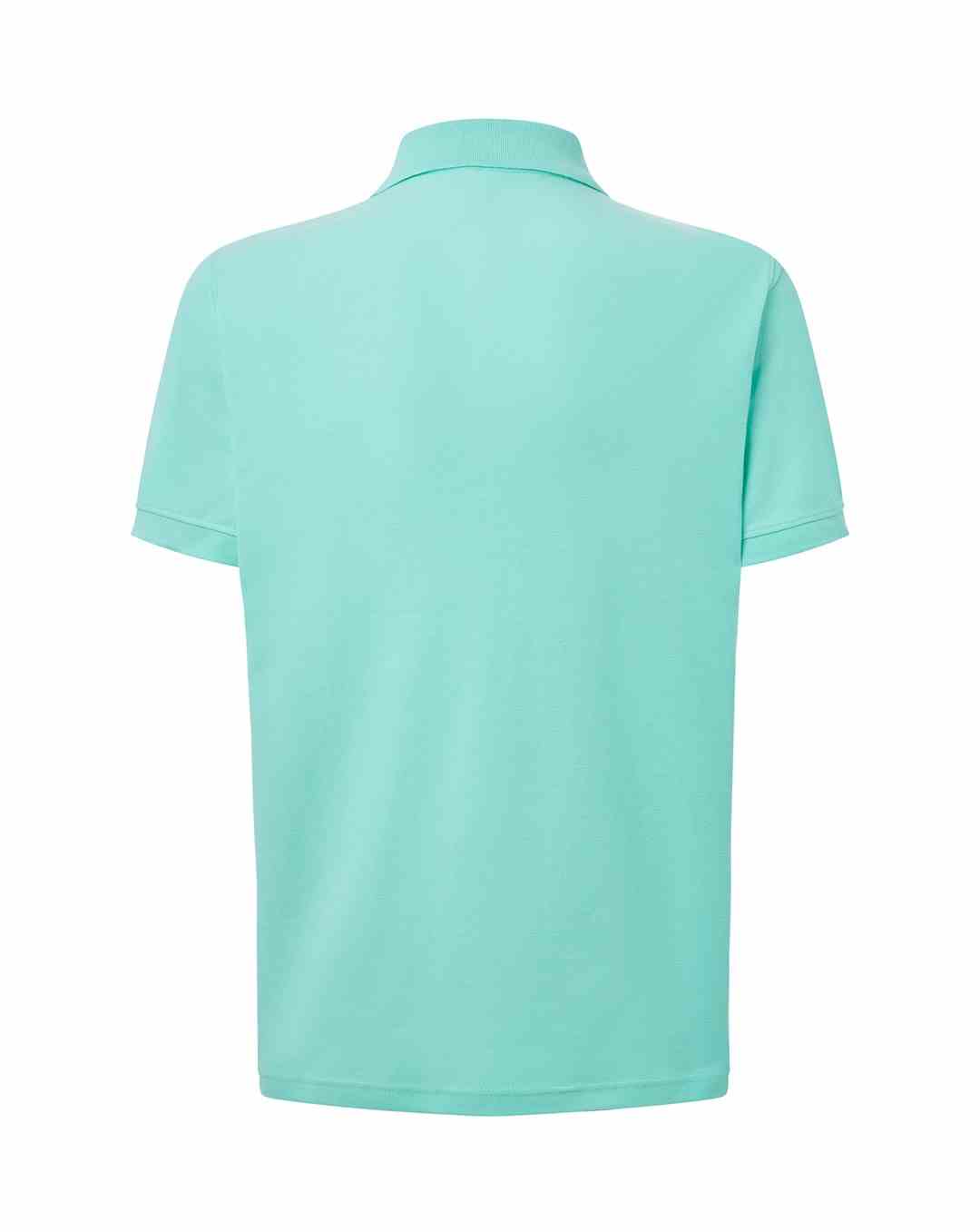 Polo męskie z krótkim rękawem. Zapinane na dwa guziki. Kołnierzyk i rękawy wykończone dzianiną 1x1. Boczne rozcięcia. 100% stabilizowana bawełna czesankowa pique.