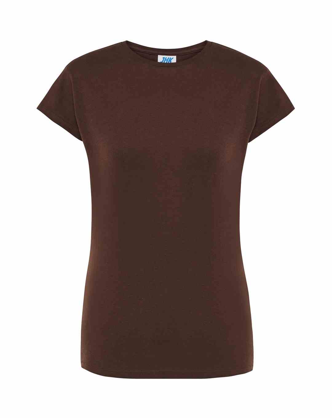 T-shirt damski z krótkim rękawem. Krój dopasowany do sylwetki. Ściągacz przy szyi. Szwy boczne. Podwójne szwy na ramionach i spodzie koszulki. Łatwo usuwalna metka. 100 % bawełna.