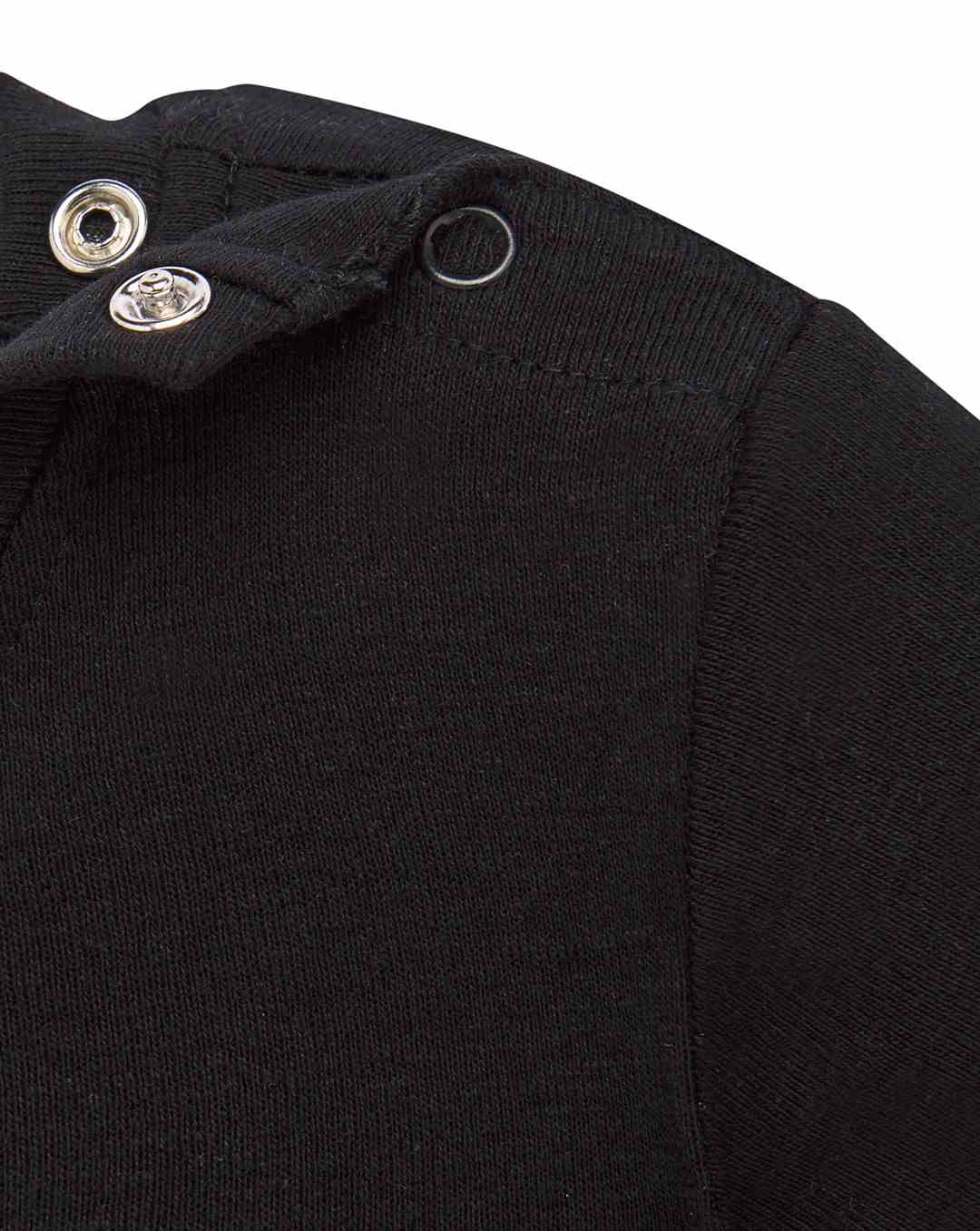 Body dziecięce z długim rękawem. Wykończenie pod szyją - lycrą. Zapinane na ramieniu i w kroku. Ściągacz 1x1. 100% bawełna.