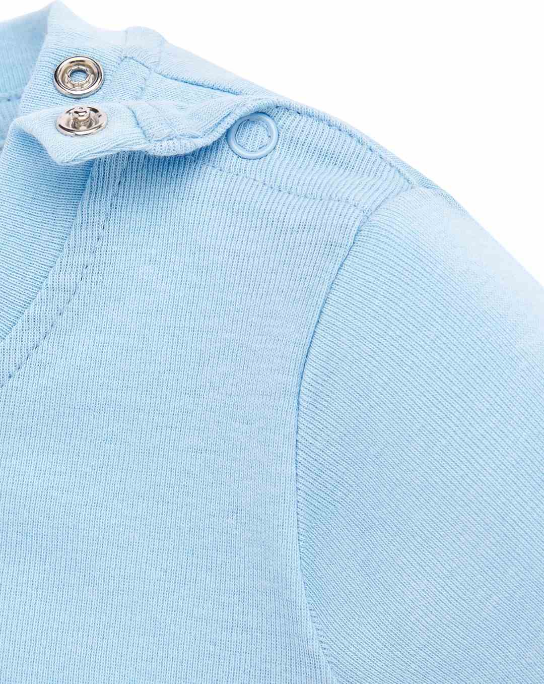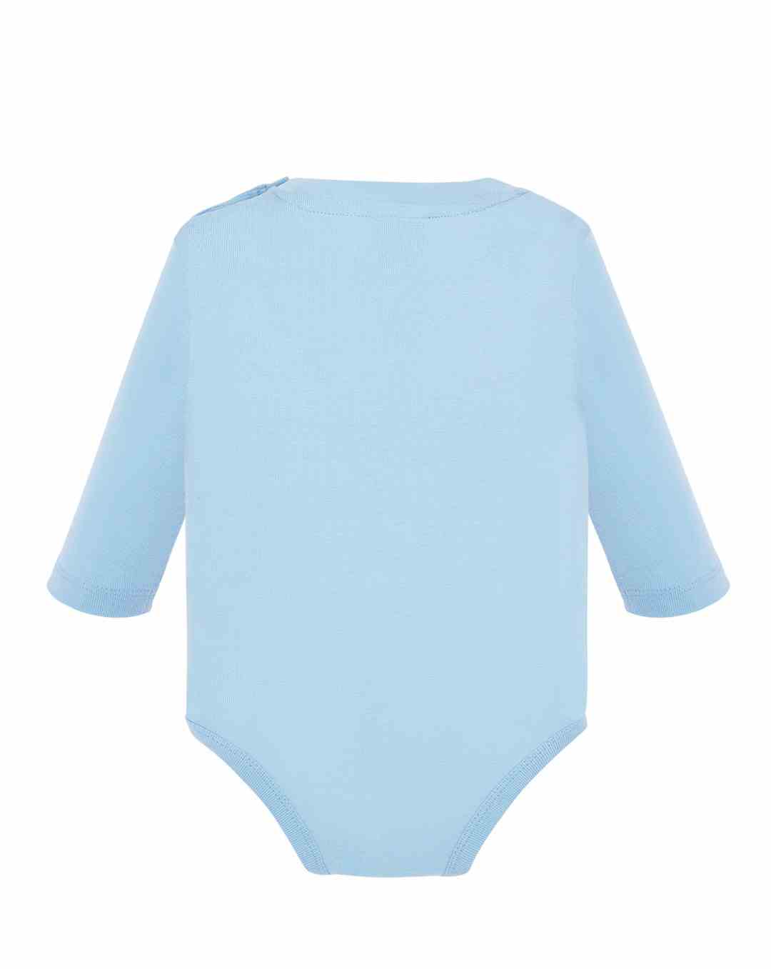 Body dziecięce z długim rękawem. Wykończenie pod szyją - lycrą. Zapinane na ramieniu i w kroku. Ściągacz 1x1. 100% bawełna.