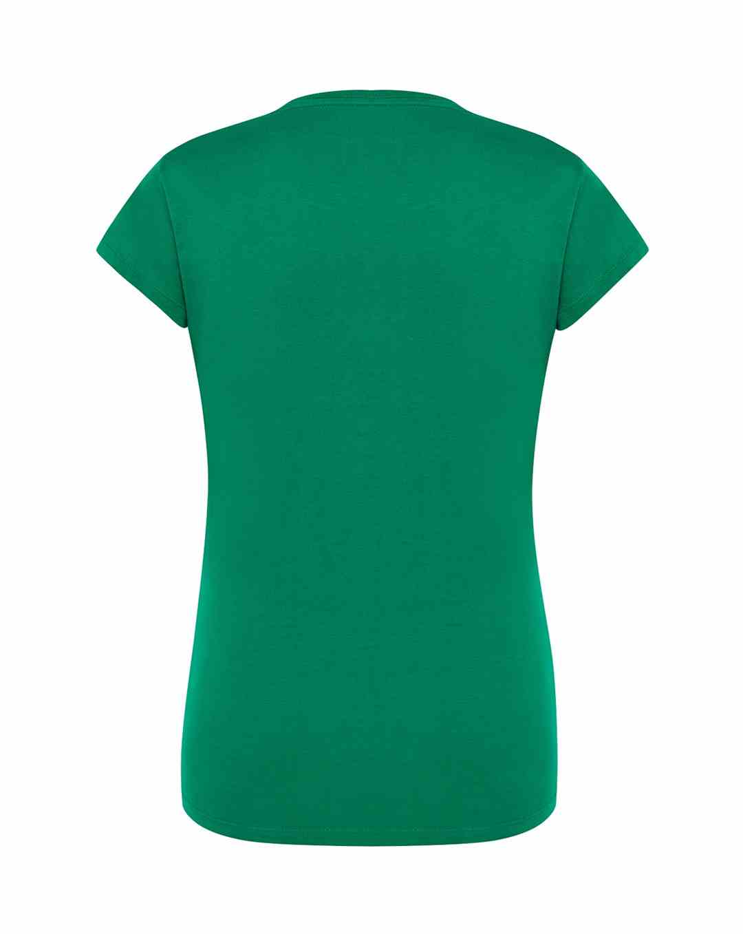 T-shirt damski z krótkim rękawem. Krój dopasowany do sylwetki. Ściągacz przy szyi. Szwy boczne. Podwójne szwy na ramionach i spodzie koszulki. Łatwo usuwalna metka. 100 % bawełna.