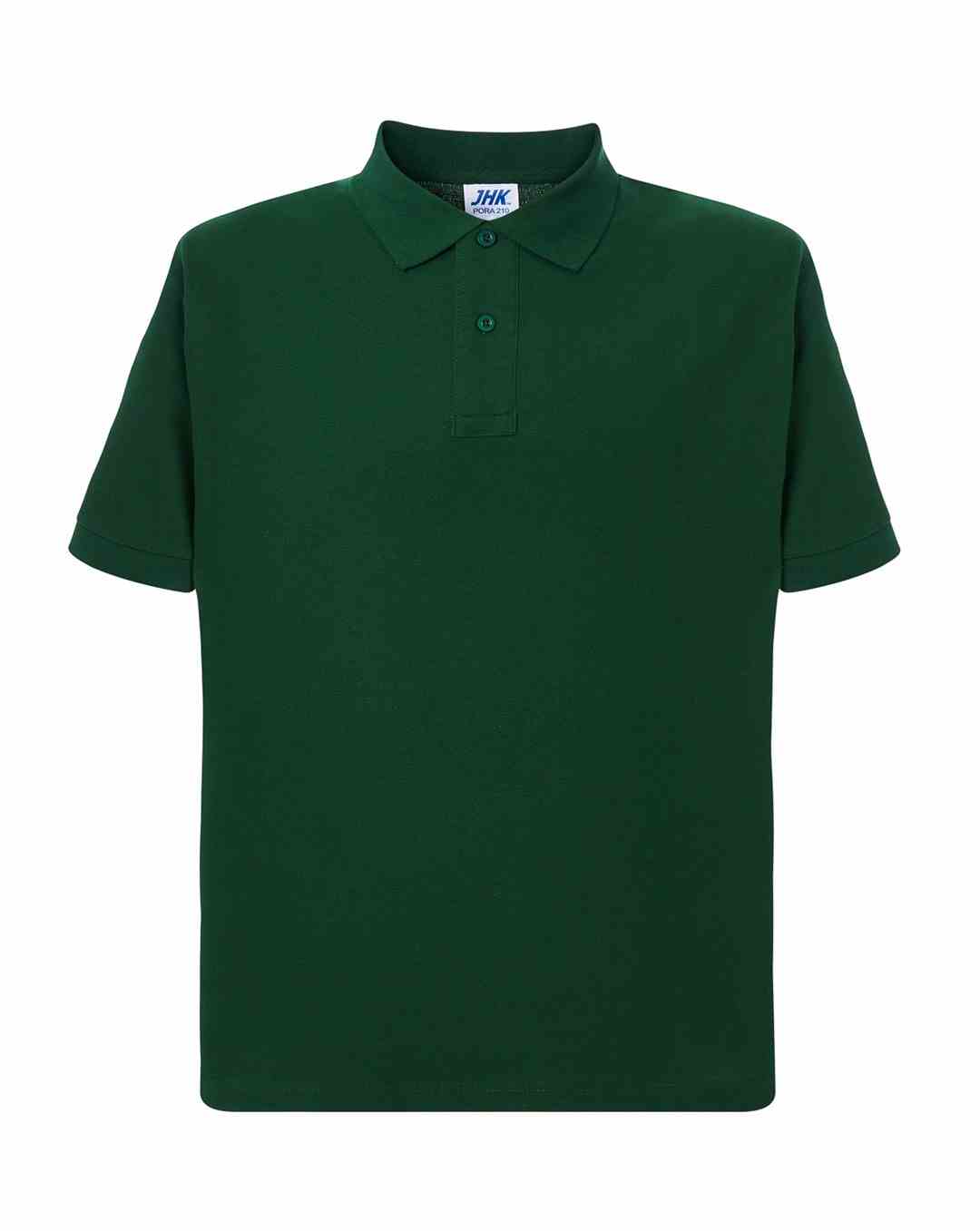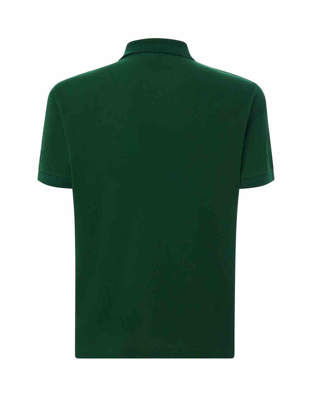 Polo męskie z krótkim rękawem. Zapinane na dwa guziki. Kołnierzyk i rękawy wykończone dzianiną 1x1. Boczne rozcięcia. 100% stabilizowana bawełna czesankowa pique.