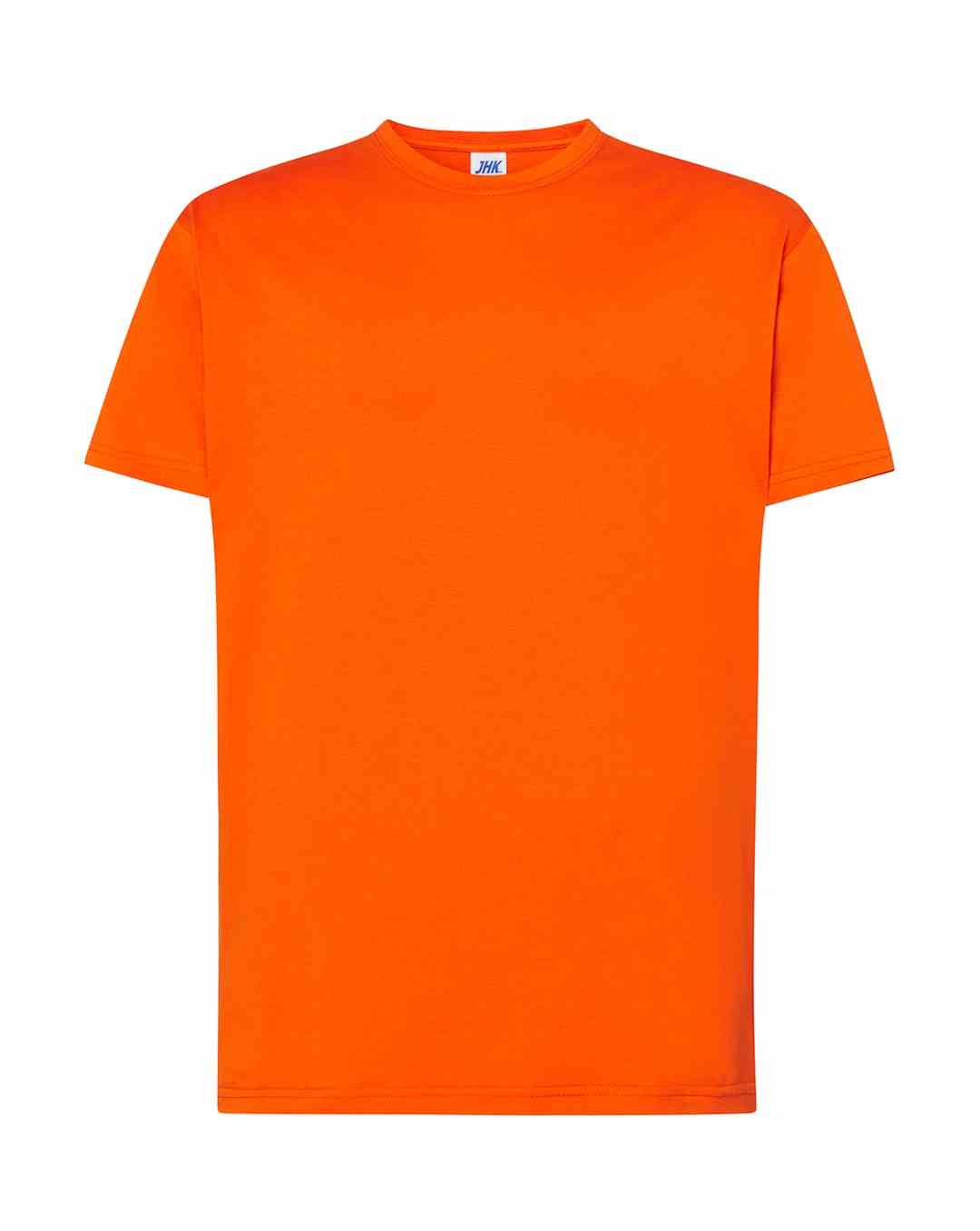 T-shirt męski z krótkim rękawem. Brak bocznych szwów. Podwójne szwy na ramionach. Wzmocniony lycrą ściągacz. Taśma wzmacniająca. 100% bawełna stabilizowana.