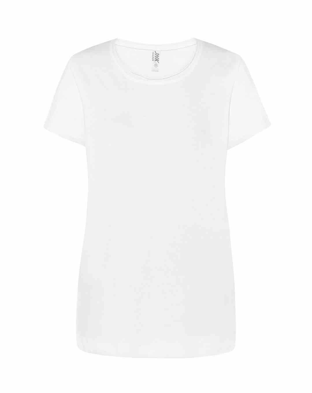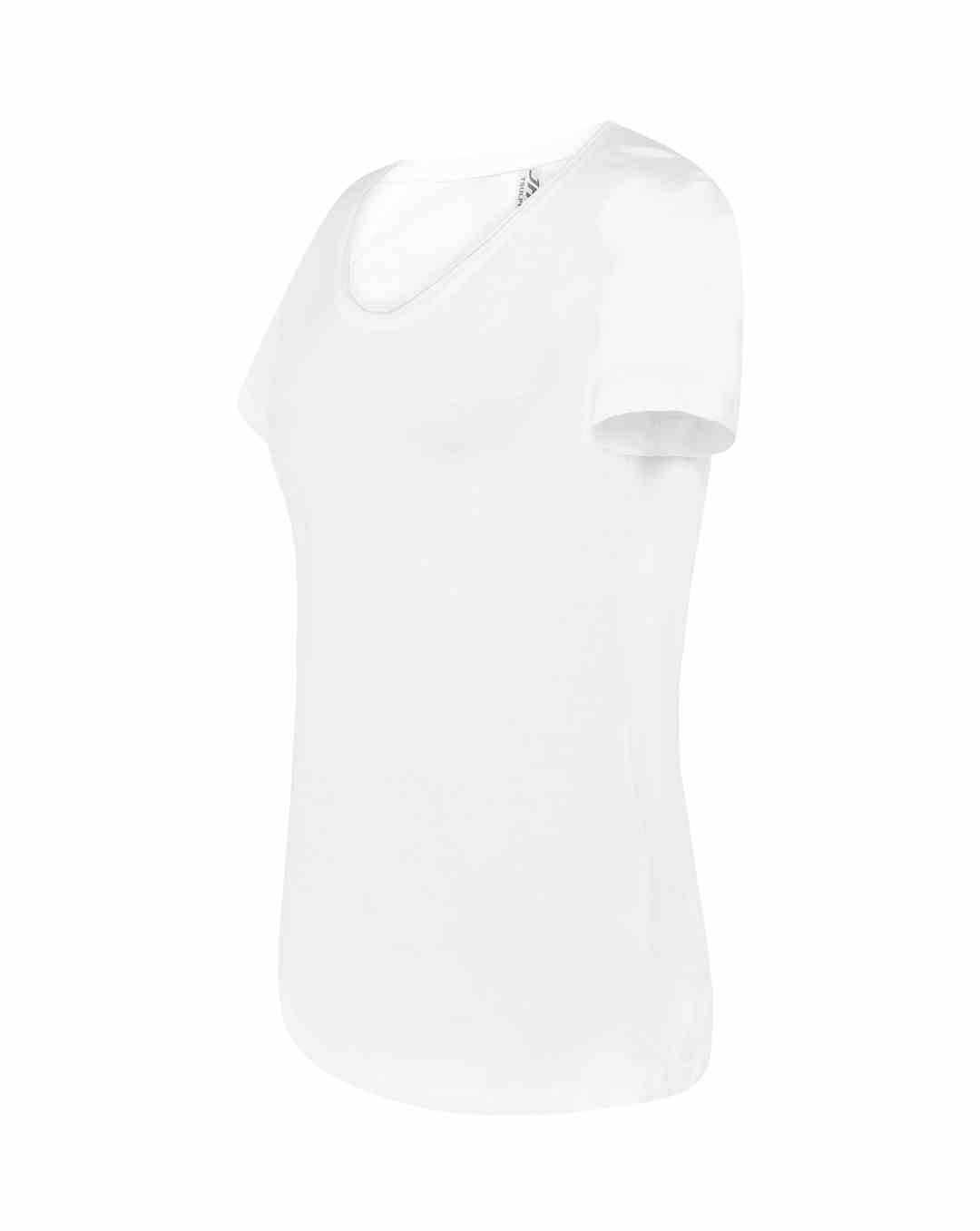 Bluzka damska z krótkim rękawem, okrągły dekolt. Bez lamówki przy dekoldzie.