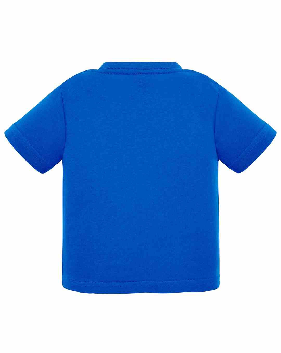 Koszulka dla niemowląt z krótkim rękawem. Rozmiar 0 zapinany na guziki na lewym ramieniu. Wzmocniony lycrą ściągacz. Brak bocznych szwów. Podwójne szwy na ramionach. Taśma wzmacniająca. 100% bawełna stabilizowana