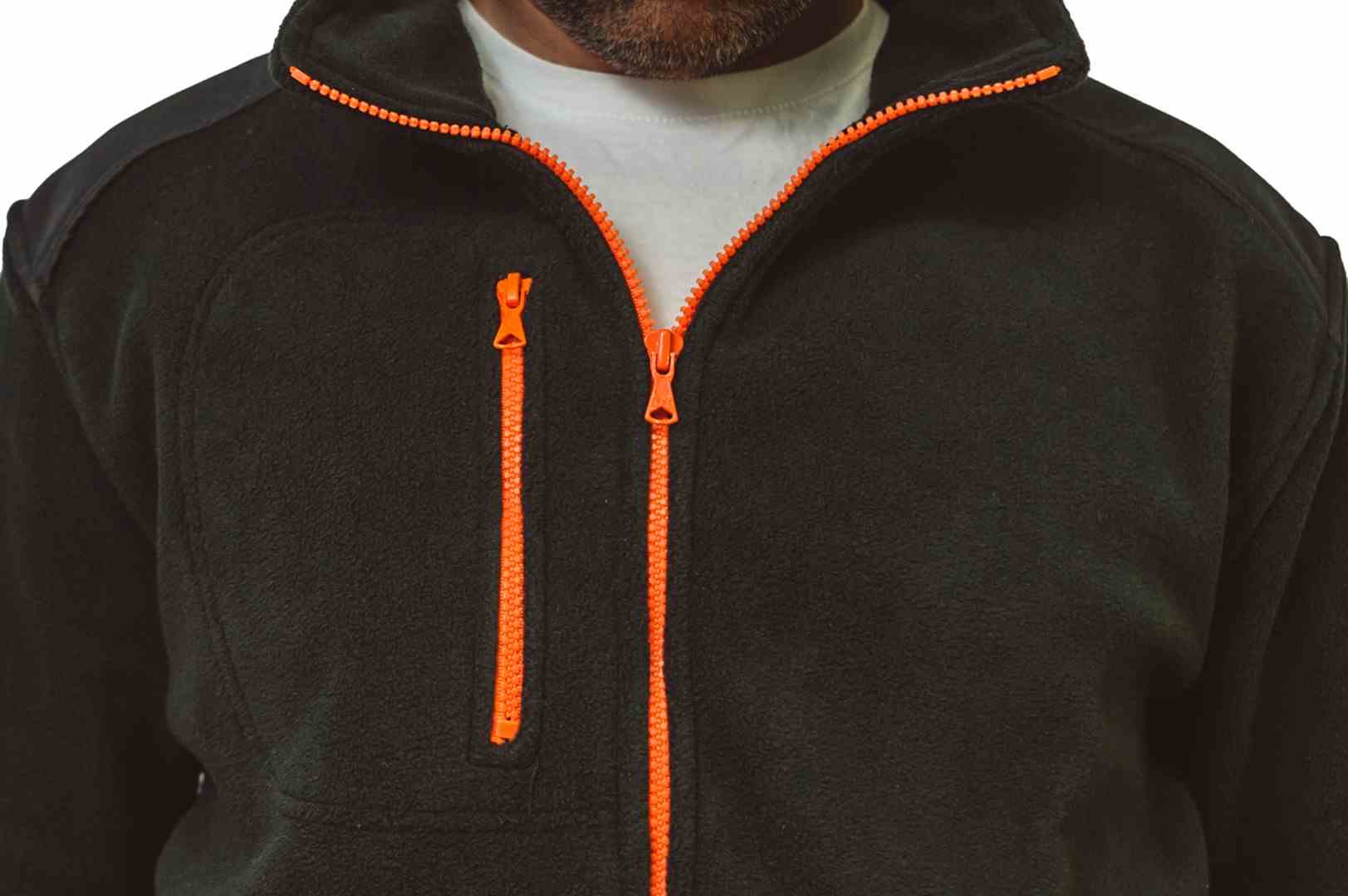 Bluza wykonana z POLARU. Polar z wykończeniem antypilingowym. Polar jest gruby i posiada bardzo dobre właściwości cieplne, przyjemny w dotyku, 2 kieszenie zasuwane zamkami błyskawicznymi oraz dodatkowa kieszeń na piersi z zamkiem. W dolnej częśći możliwa regulacja na gume ze stoperami. Bluza na karku, barkach i łokciach posiada wzmocnienia. Możliwe zastosowanie dowolnej kolorystyki i łączenia kolorów w produkcje:
