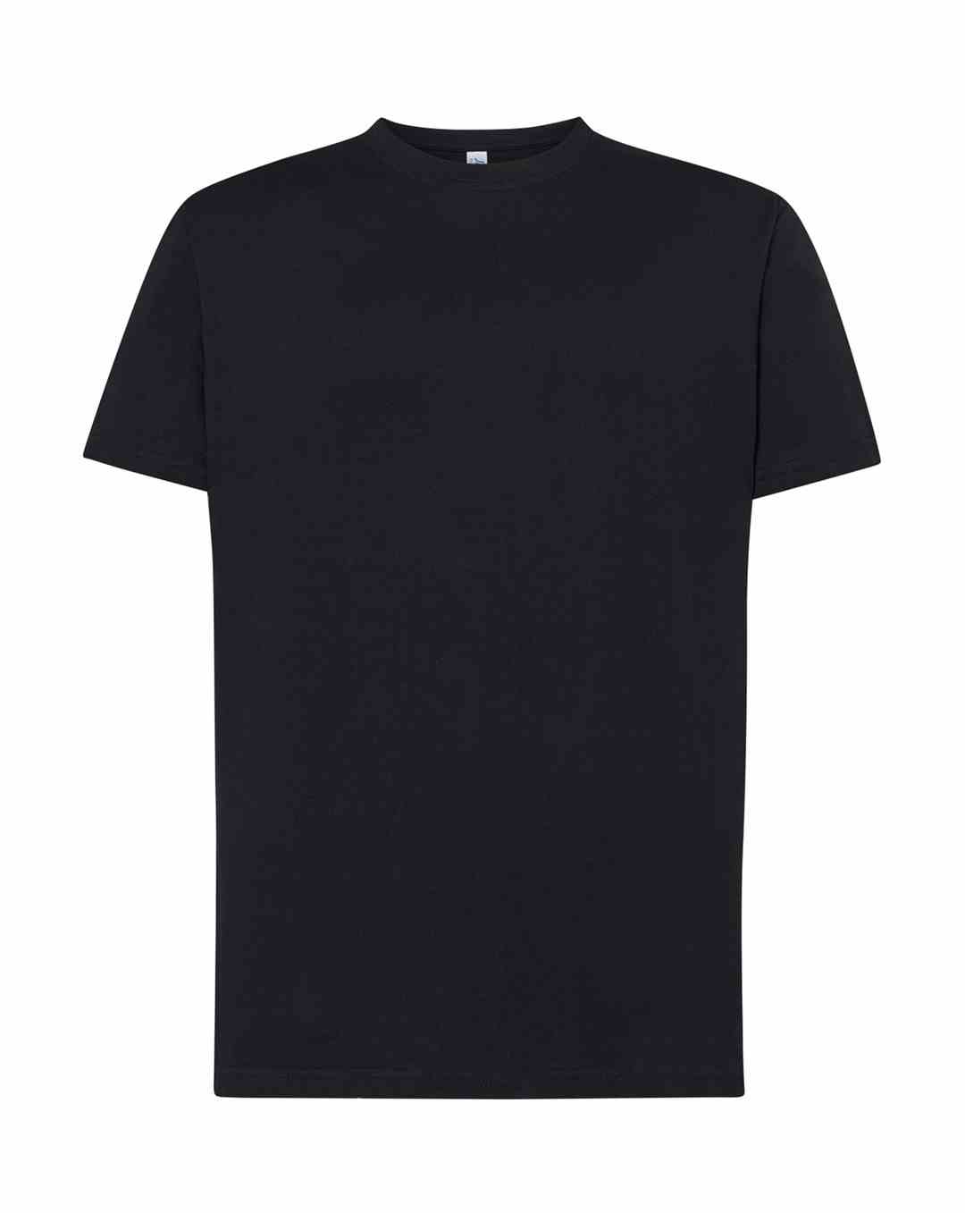 T-shirt męski z krótkim rękawem. Brak bocznych szwów. Podwójne szwy na ramionach. Wzmocniony lycrą ściągacz. Taśma wzmacniająca. 100% bawełna stabilizowana.