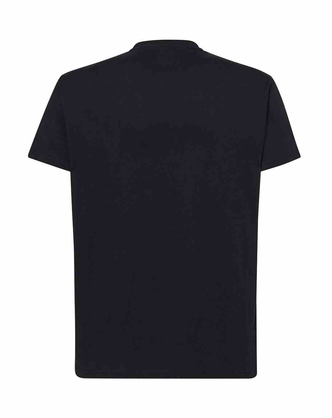 T-shirt męski z krótkim rękawem. Brak bocznych szwów. Podwójne szwy na ramionach. Wzmocniony lycrą ściągacz. Taśma wzmacniająca. 100% bawełna stabilizowana.