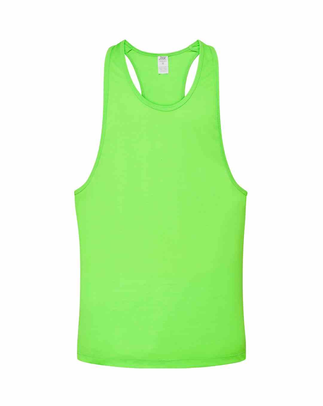 Sportowo-plażowy t-shirt bez rękawków. Wycięcie na plecach w stylu bokserskim. Model unisex. 100% bawełna.