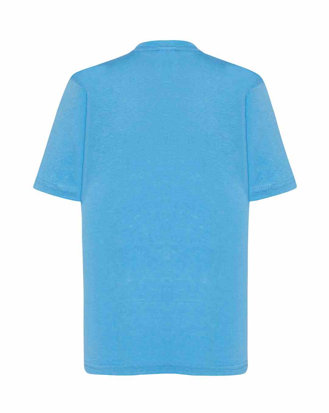 T-shirt dziecięcy. Dopasowany do sylwetki. Ściągacz wzmocniony lycrą. Taśma wzmacniająca pod ściągaczem. Podwójne szwy na ramionach i spodzie koszulki. 100% bawełna stabilizowana.