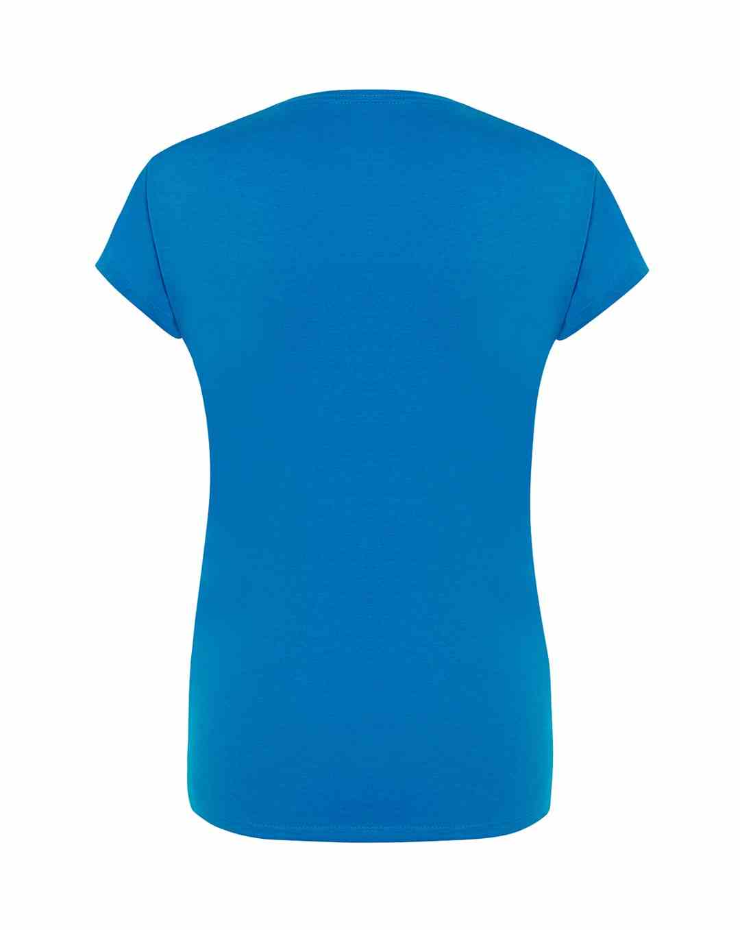 T-shirt damski z krótkim rękawem. Krój dopasowany do sylwetki. Ściągacz przy szyi. Szwy boczne. Podwójne szwy na ramionach i spodzie koszulki.  Łatwo usuwalna metka. 100 % bawełna.