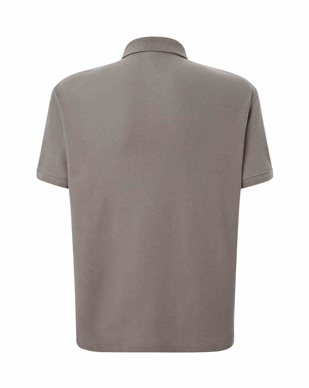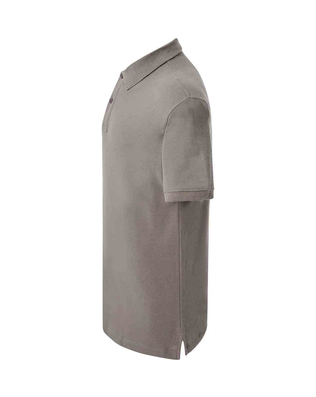 Polo męskie z krótkim rękawem. Zapinane na dwa guziki. Kołnierzyk i rękawy wykończone dzianiną 1x1. Boczne rozcięcia. 100% stabilizowana bawełna czesankowa pique.