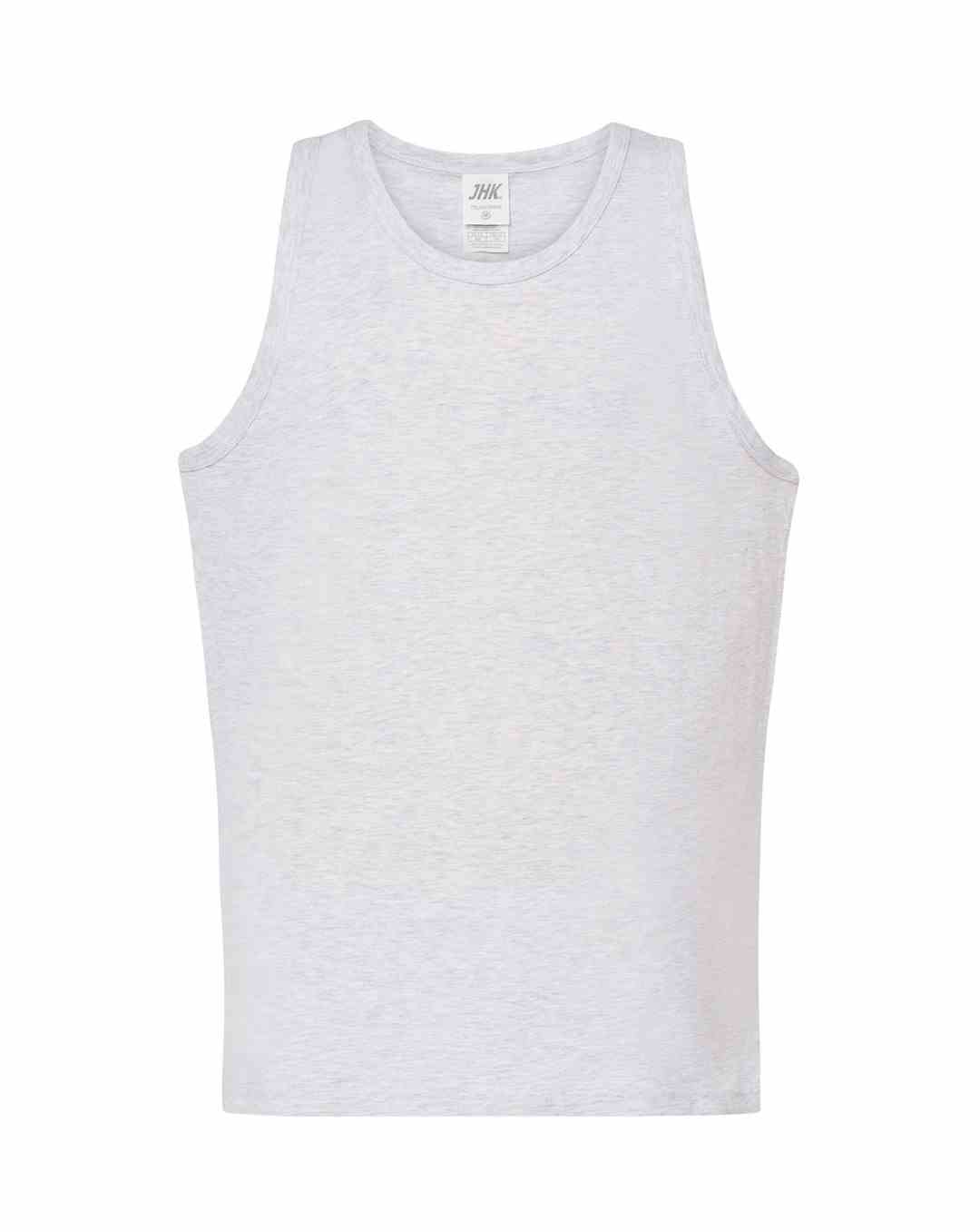 T-shirt męski bez rękawów. Single jersey. Podwójne szwy na ramionach i spodzie koszulki. 100% bawełna.