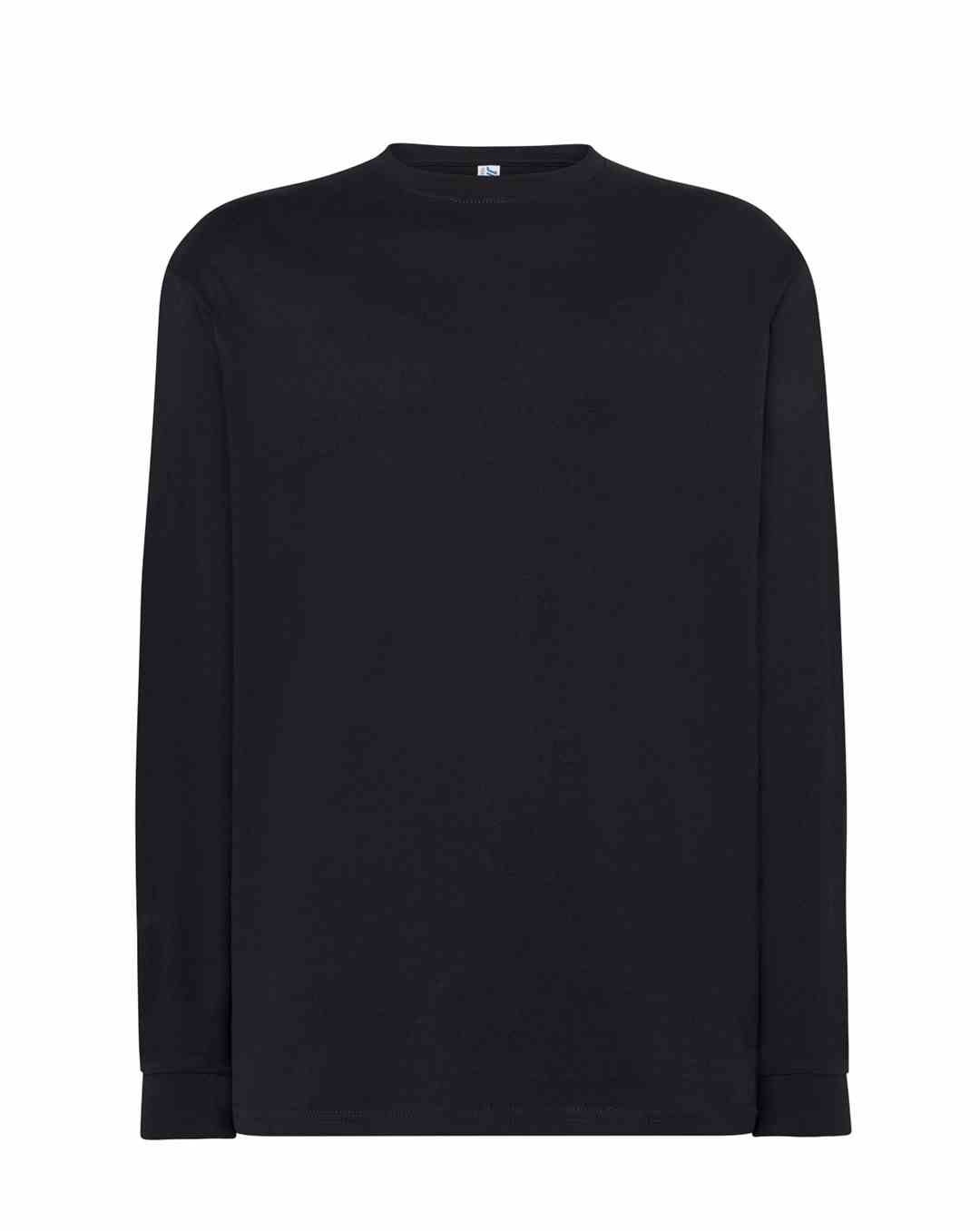 T-shirt męski z długimi rękawami zakończnymi ściągaczem. Brak bocznych szwów. Podwójne szwy na ramionach i spodzie koszulki. Wzmocniony lycrą ściągacz. Taśma wzmacniająca. 100% bawełna stabilizowana.