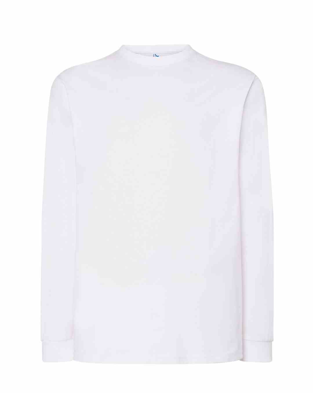 T-shirt męski z długimi rękawami zakończnymi ściągaczem. Brak bocznych szwów. Podwójne szwy na ramionach i spodzie koszulki. Wzmocniony lycrą ściągacz. Taśma wzmacniająca. 100% bawełna stabilizowana.