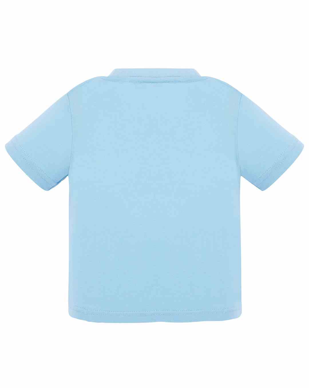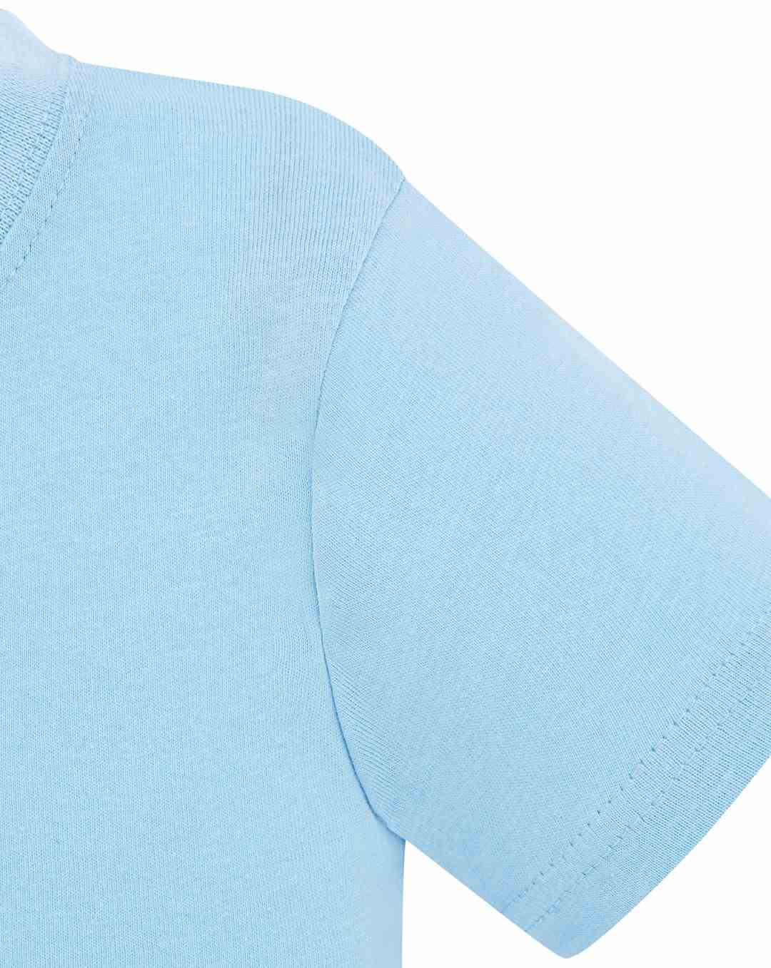 Koszulka dla niemowląt z krótkim rękawem. Rozmiar 0 zapinany na guziki na lewym ramieniu. Wzmocniony lycrą ściągacz. Brak bocznych szwów. Podwójne szwy na ramionach. Taśma wzmacniająca. 100% bawełna stabilizowana