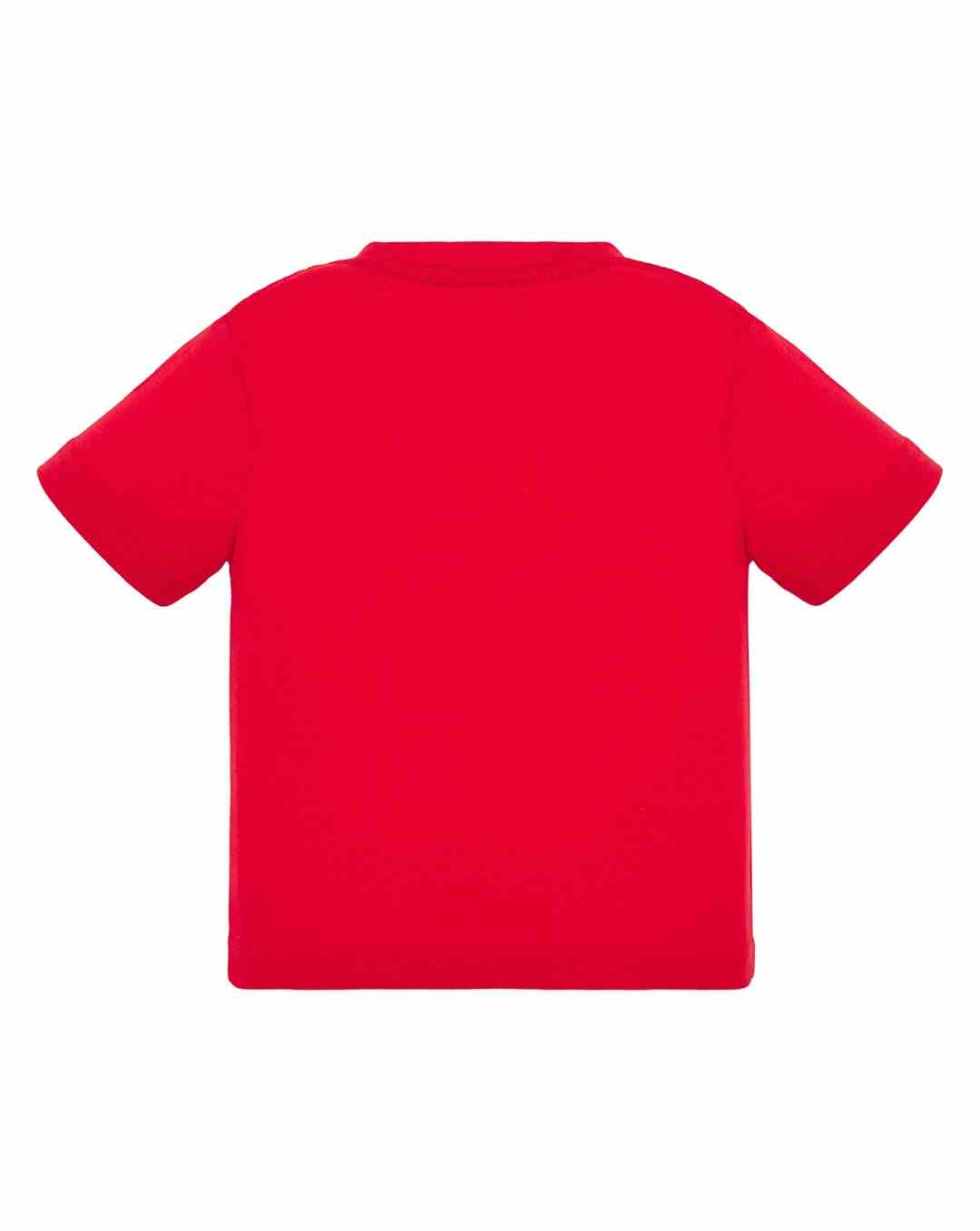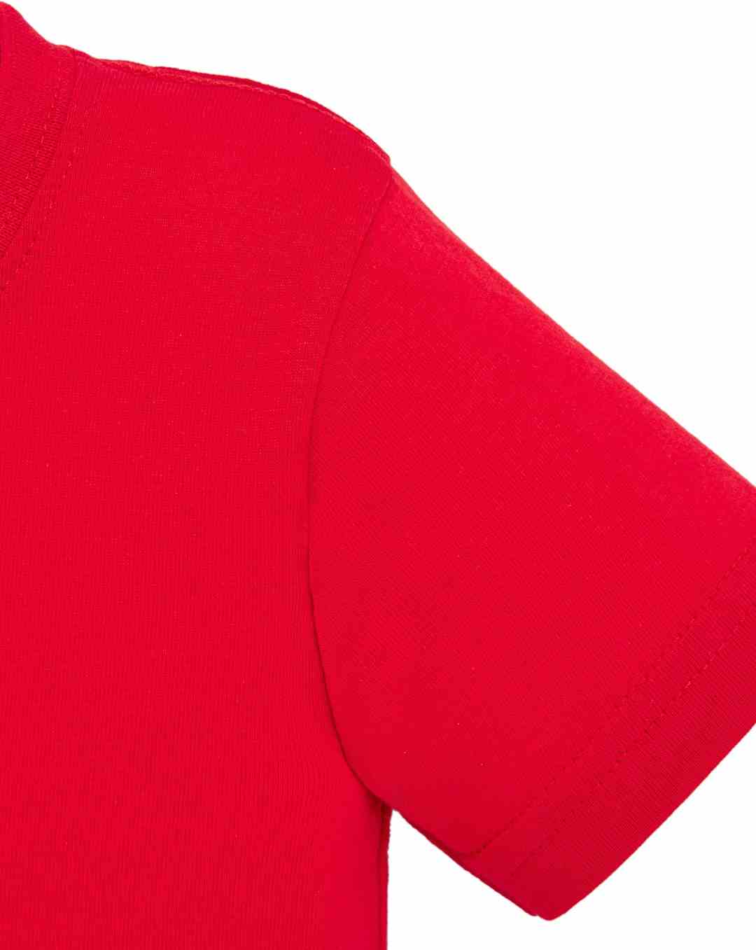 Koszulka dla niemowląt z krótkim rękawem. Rozmiar 0 zapinany na guziki na lewym ramieniu. Wzmocniony lycrą ściągacz. Brak bocznych szwów. Podwójne szwy na ramionach. Taśma wzmacniająca. 100% bawełna stabilizowana