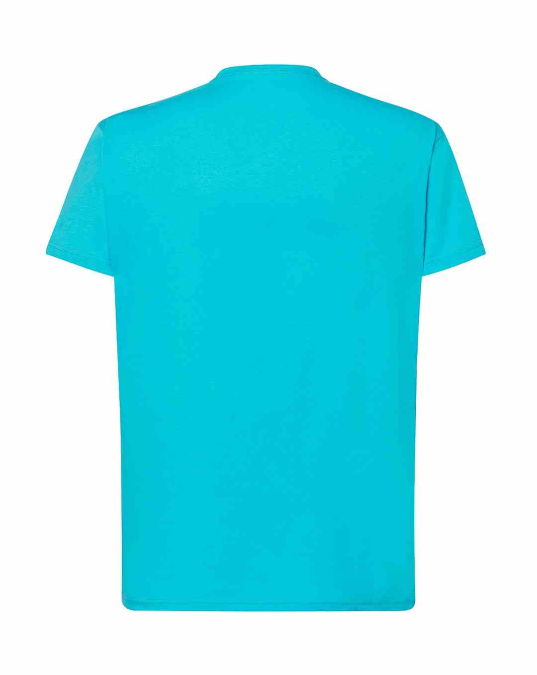T-shirt męski z krótkim rękawem. Brak bocznych szwów. Podwójne szwy na ramionach. Wzmocniony lycrą ściągacz. Taśma wzmacniająca. 100% bawełna stabilizowana.