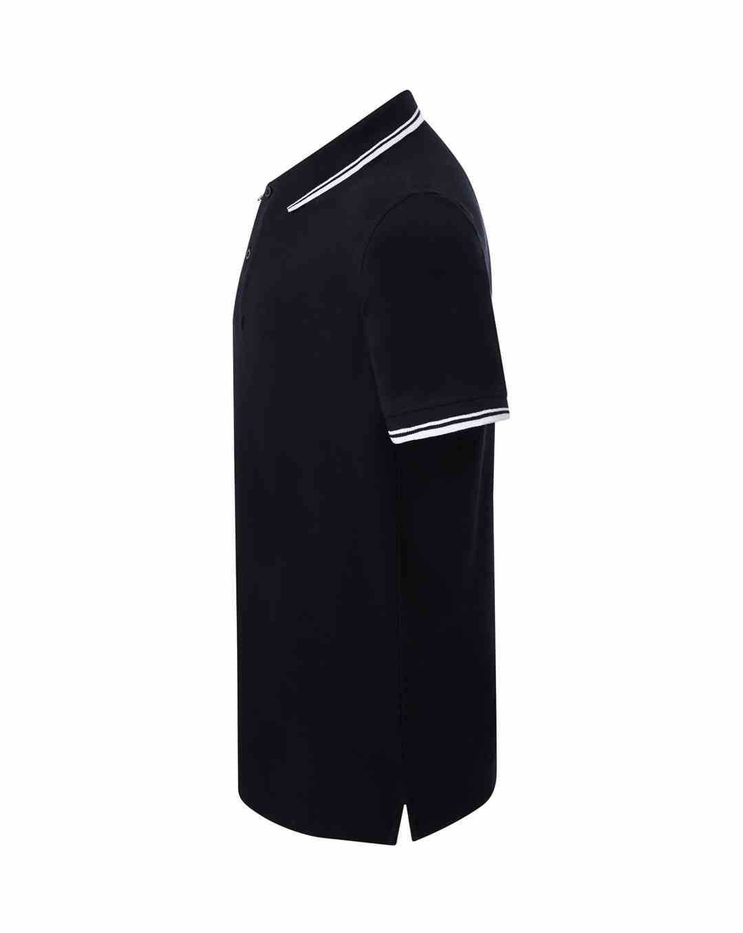 Polo męskie z krótkim rękawem. Zapinane na dwa guziki. Kołnierzyk i rękawy wykończone dzianiną 1x1. Boczne rozcięcia. 100% stabilizowana bawełna czesankowa pique.