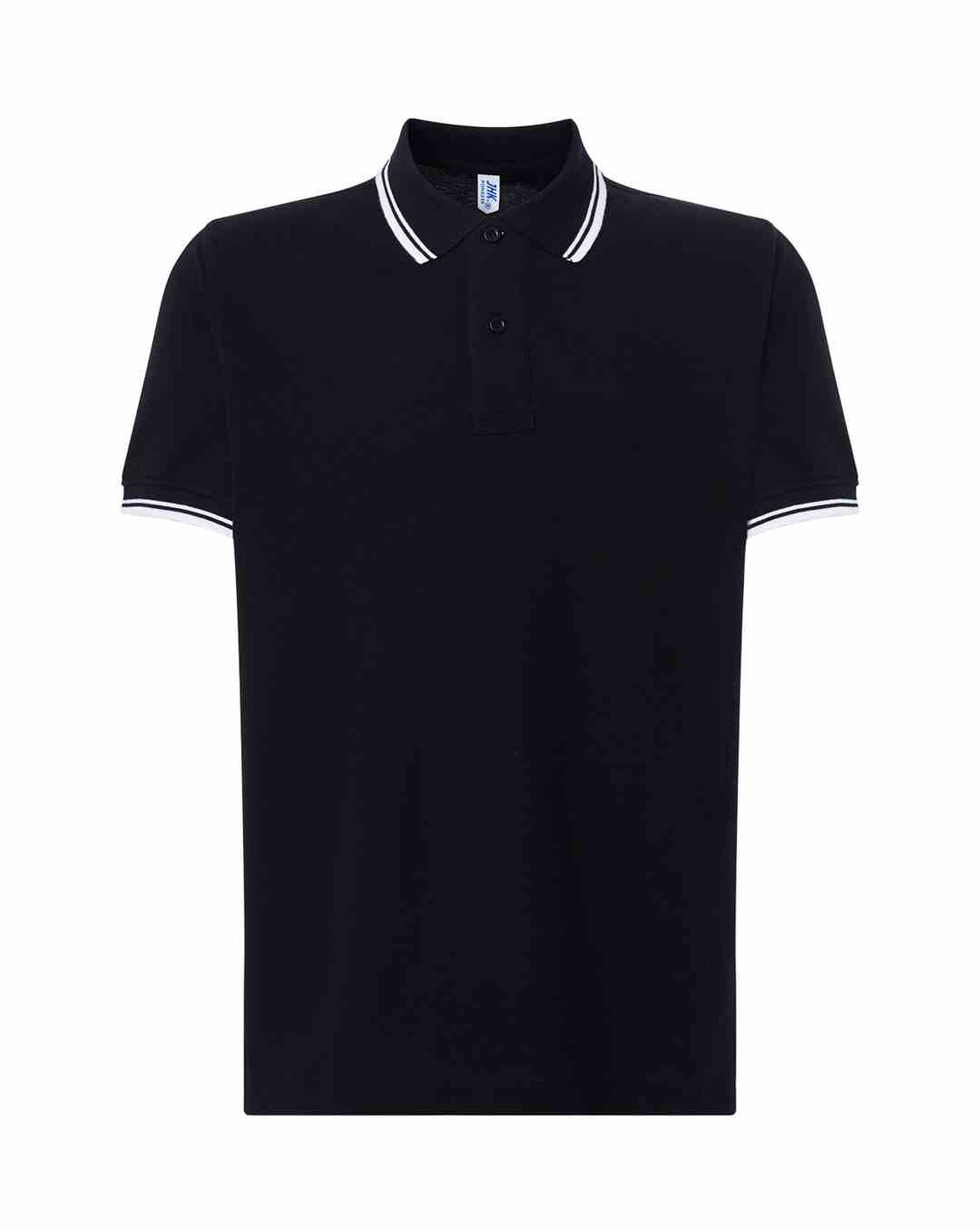 Polo męskie z krótkim rękawem. Zapinane na dwa guziki. Kołnierzyk i rękawy wykończone dzianiną 1x1. Boczne rozcięcia. 100% stabilizowana bawełna czesankowa pique.