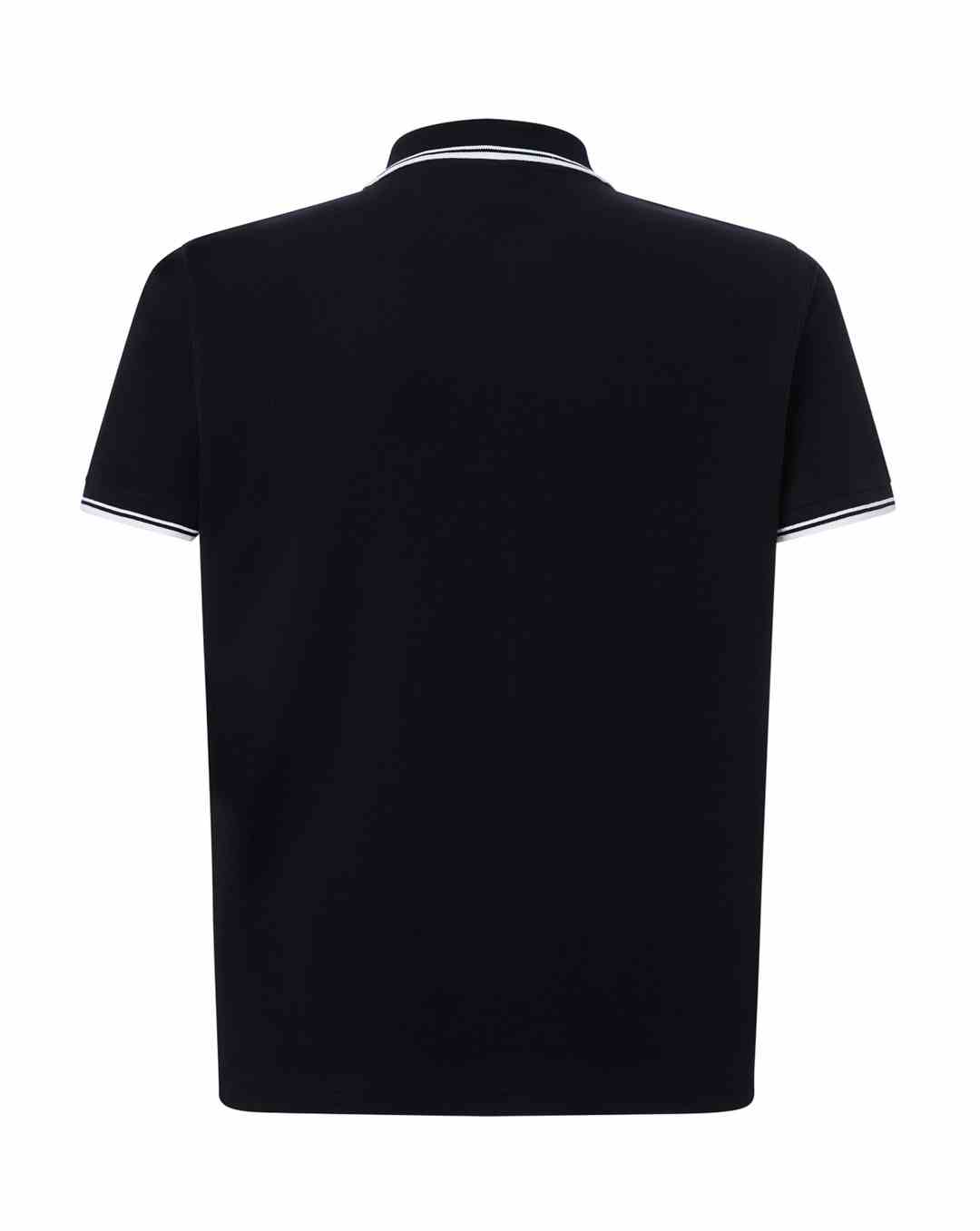 Polo męskie z krótkim rękawem. Zapinane na dwa guziki. Kołnierzyk i rękawy wykończone dzianiną 1x1. Boczne rozcięcia. 100% stabilizowana bawełna czesankowa pique.
