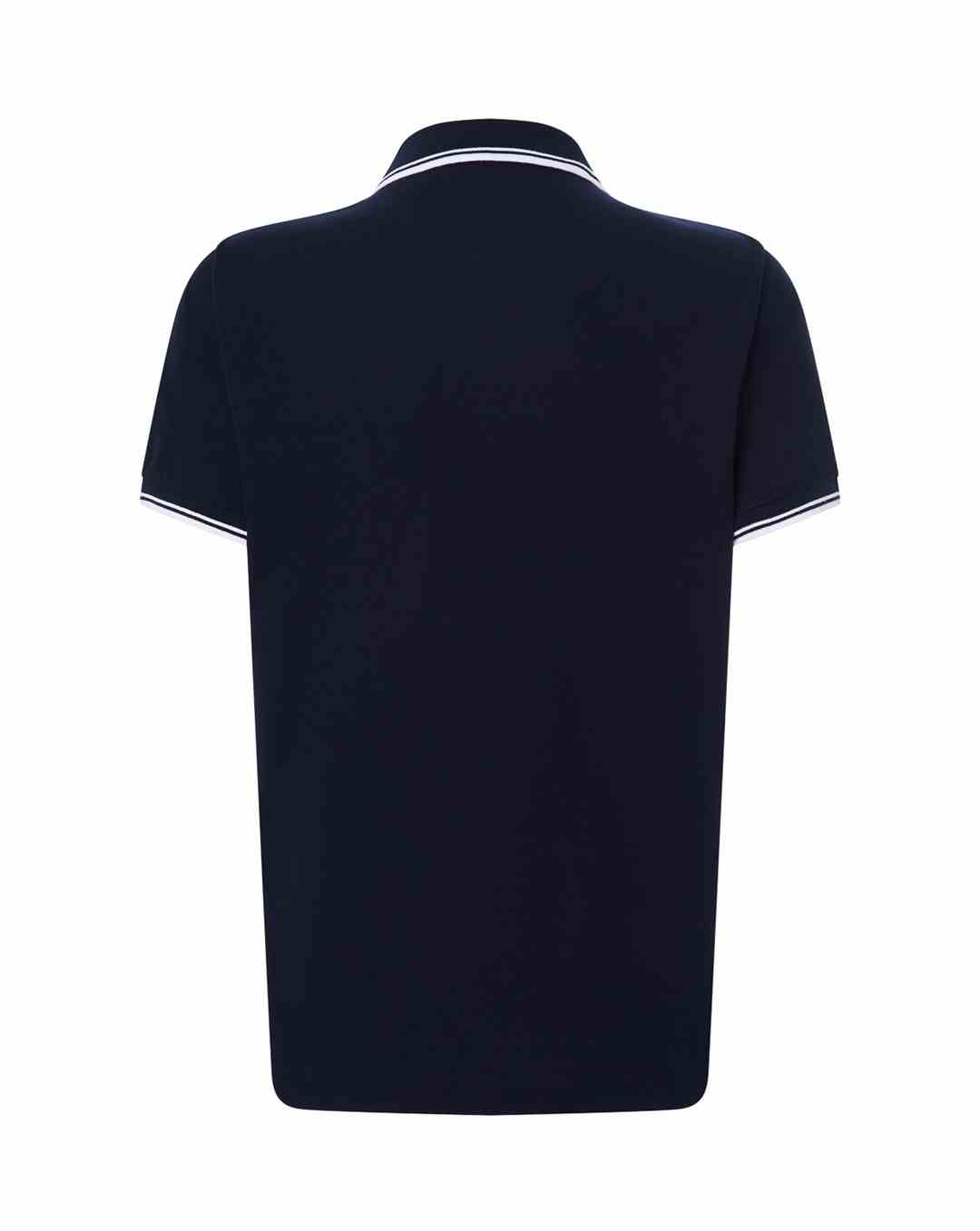 Polo męskie z krótkim rękawem. Zapinane na dwa guziki. Kołnierzyk i rękawy wykończone dzianiną 1x1. Boczne rozcięcia. 100% stabilizowana bawełna czesankowa pique.