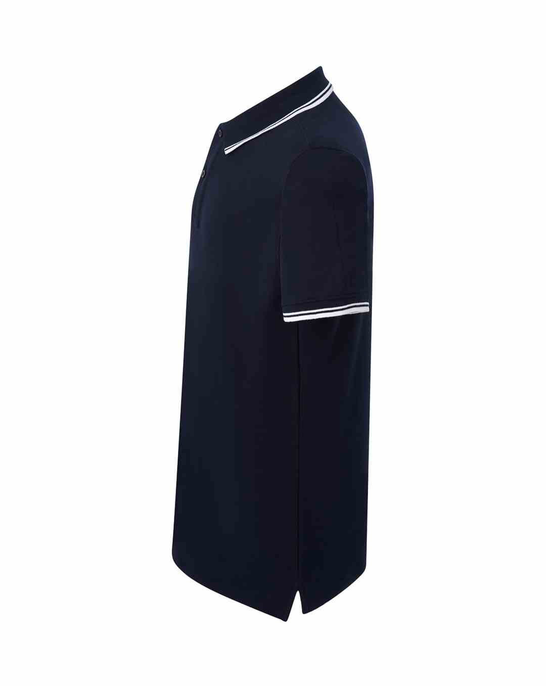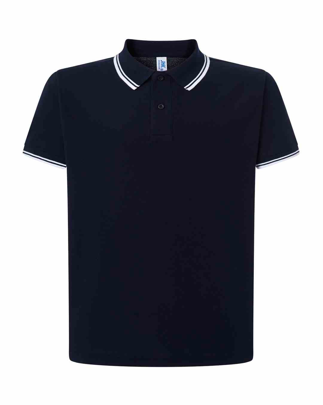 Polo męskie z krótkim rękawem. Zapinane na dwa guziki. Kołnierzyk i rękawy wykończone dzianiną 1x1. Boczne rozcięcia. 100% stabilizowana bawełna czesankowa pique.