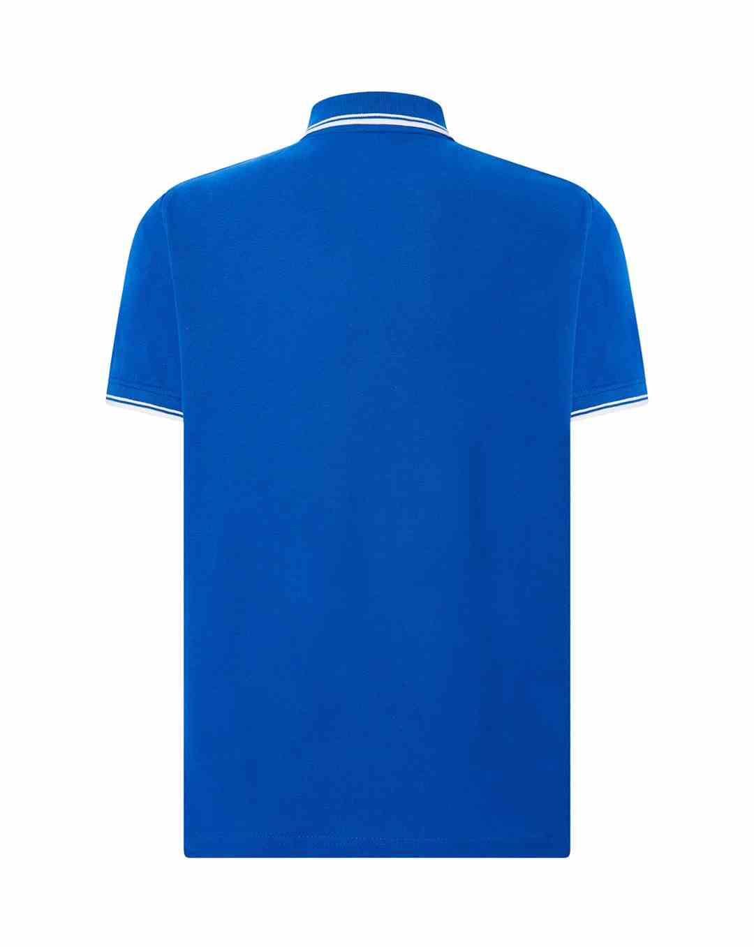 Polo męskie z krótkim rękawem. Zapinane na dwa guziki. Kołnierzyk i rękawy wykończone dzianiną 1x1. Boczne rozcięcia. 100% stabilizowana bawełna czesankowa pique.