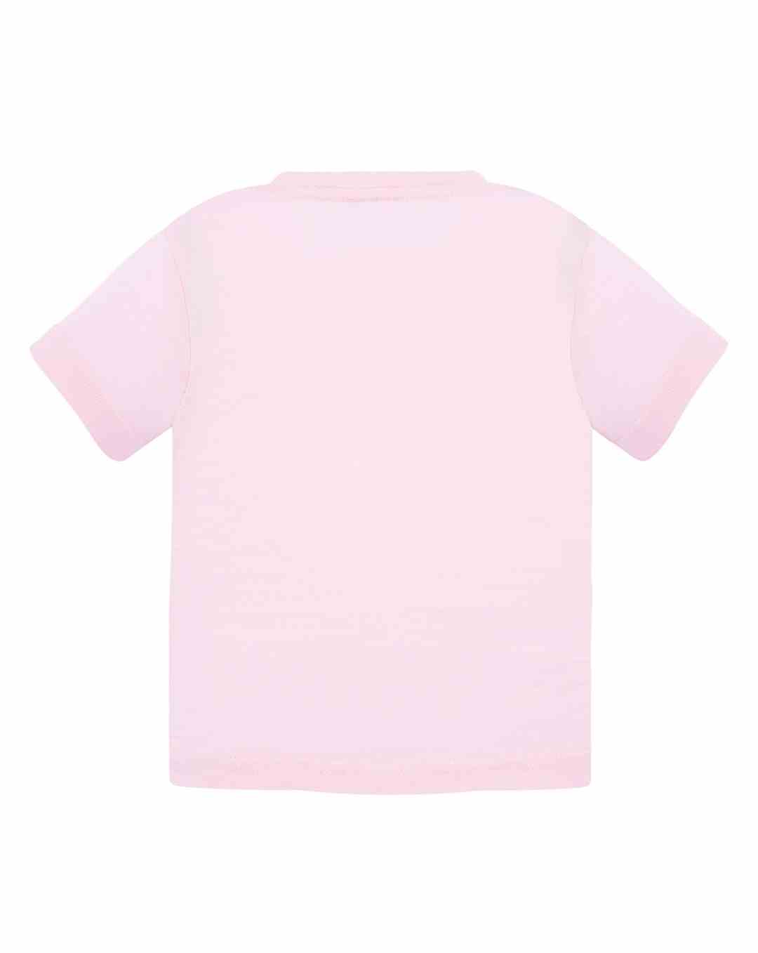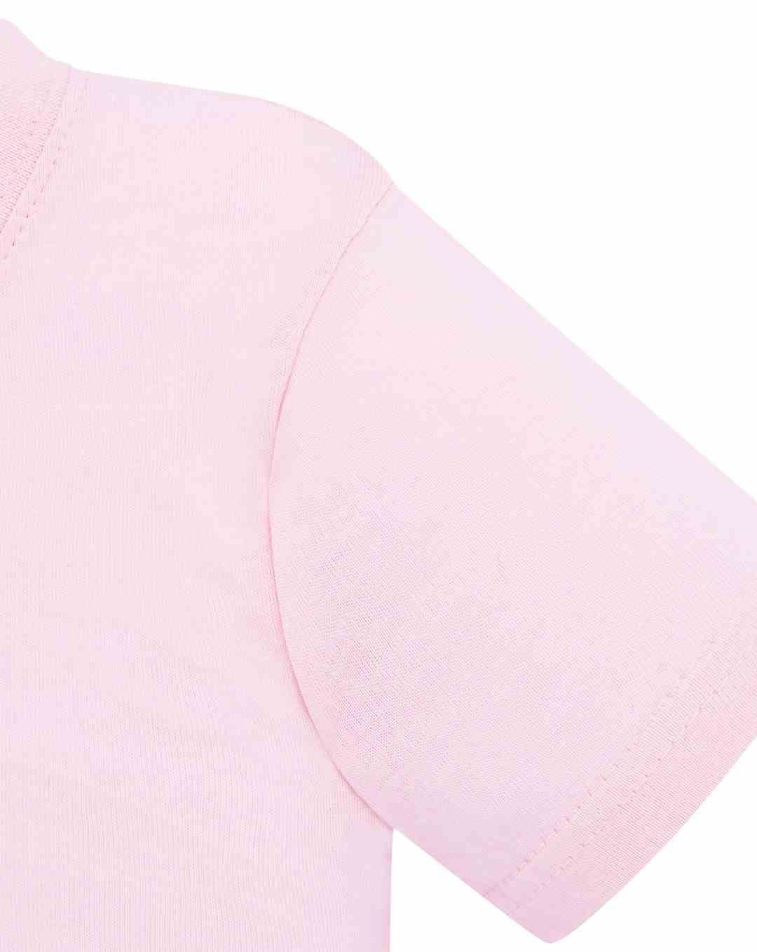 Koszulka dla niemowląt z krótkim rękawem. Rozmiar 0 zapinany na guziki na lewym ramieniu. Wzmocniony lycrą ściągacz. Brak bocznych szwów. Podwójne szwy na ramionach. Taśma wzmacniająca. 100% bawełna stabilizowana