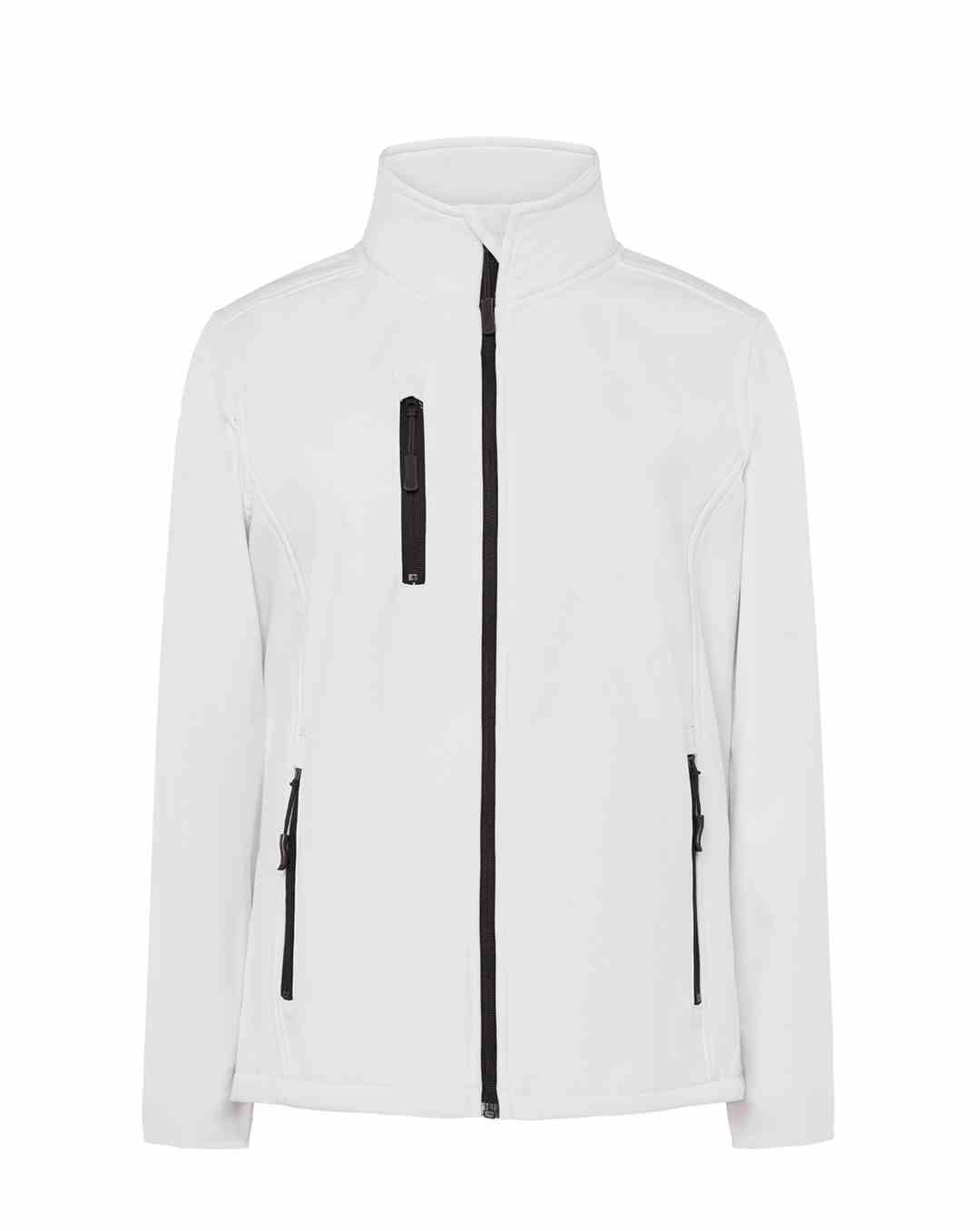 Kurtka damska typu softshell. Długi zamek. Kieszenie boczne. Waterproof 3000mm, breathability 3000mvp, windstop. Ext: 95% poliester / 5% elastan; Int:100% poliester