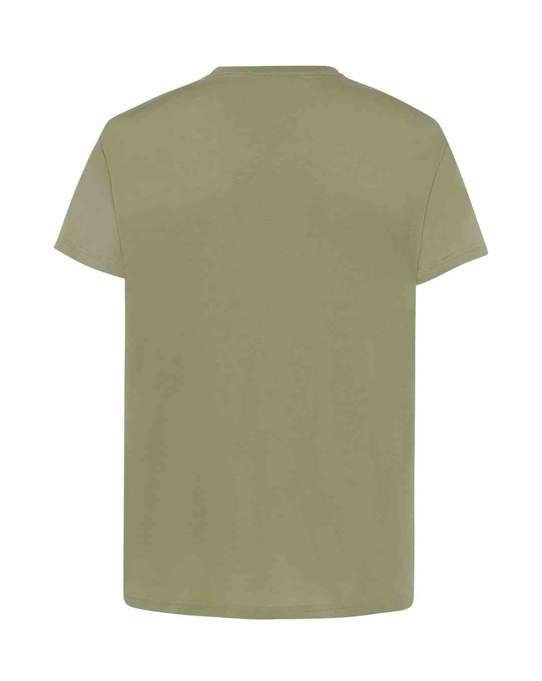 T-shirt męski z krótkim rękawem. Brak bocznych szwów. Podwójne szwy na ramionach. Wzmocniony lycrą ściągacz. Taśma wzmacniająca. 100% bawełna stabilizowana.