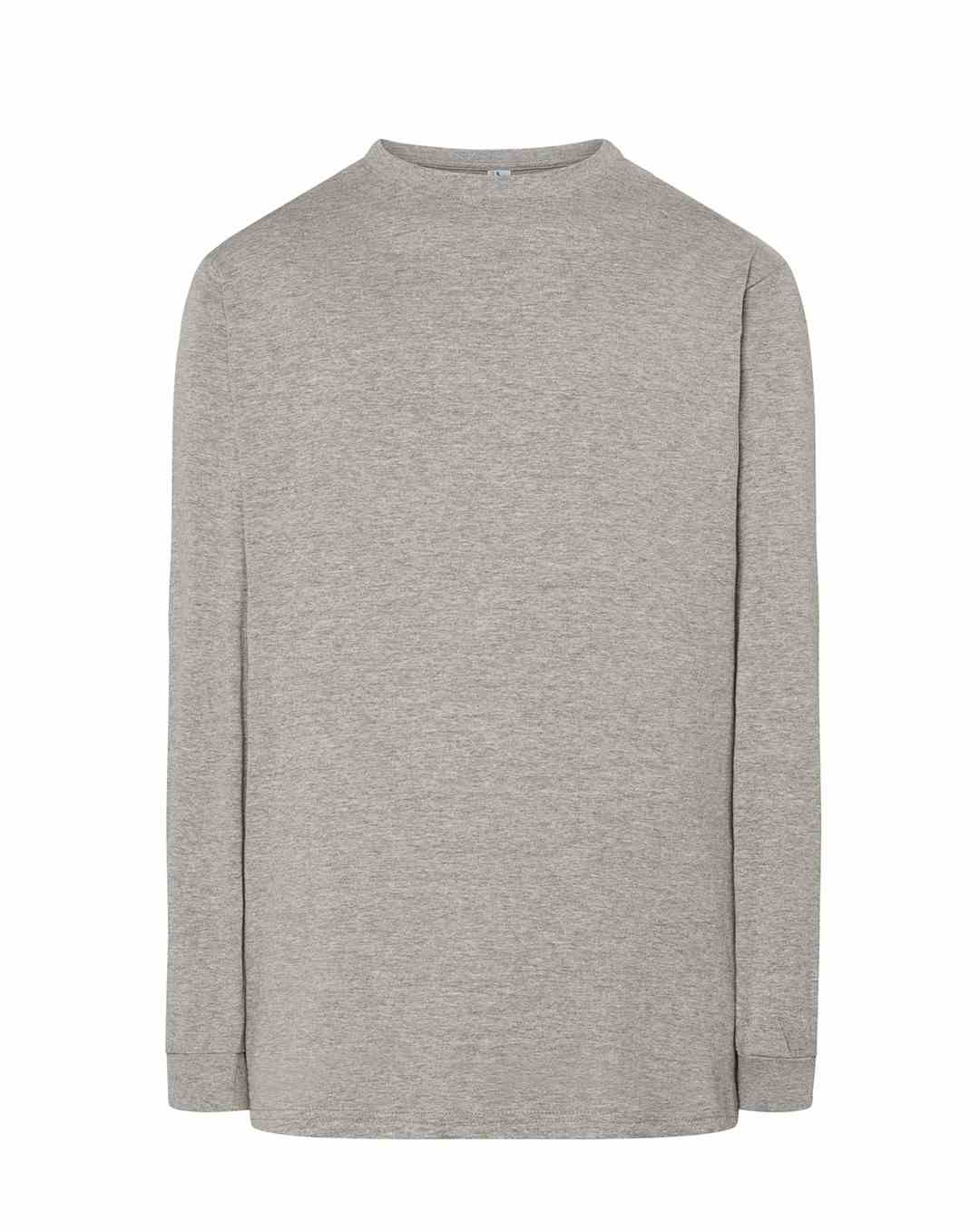 T-shirt męski z długimi rękawami zakończnymi ściągaczem. Brak bocznych szwów. Podwójne szwy na ramionach i spodzie koszulki. Wzmocniony lycrą ściągacz. Taśma wzmacniająca. 100% bawełna stabilizowana.