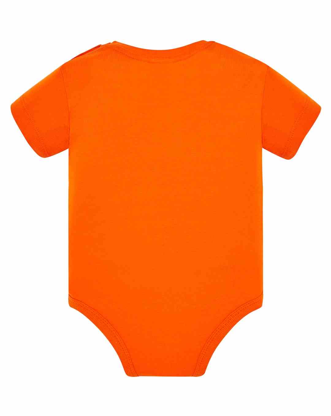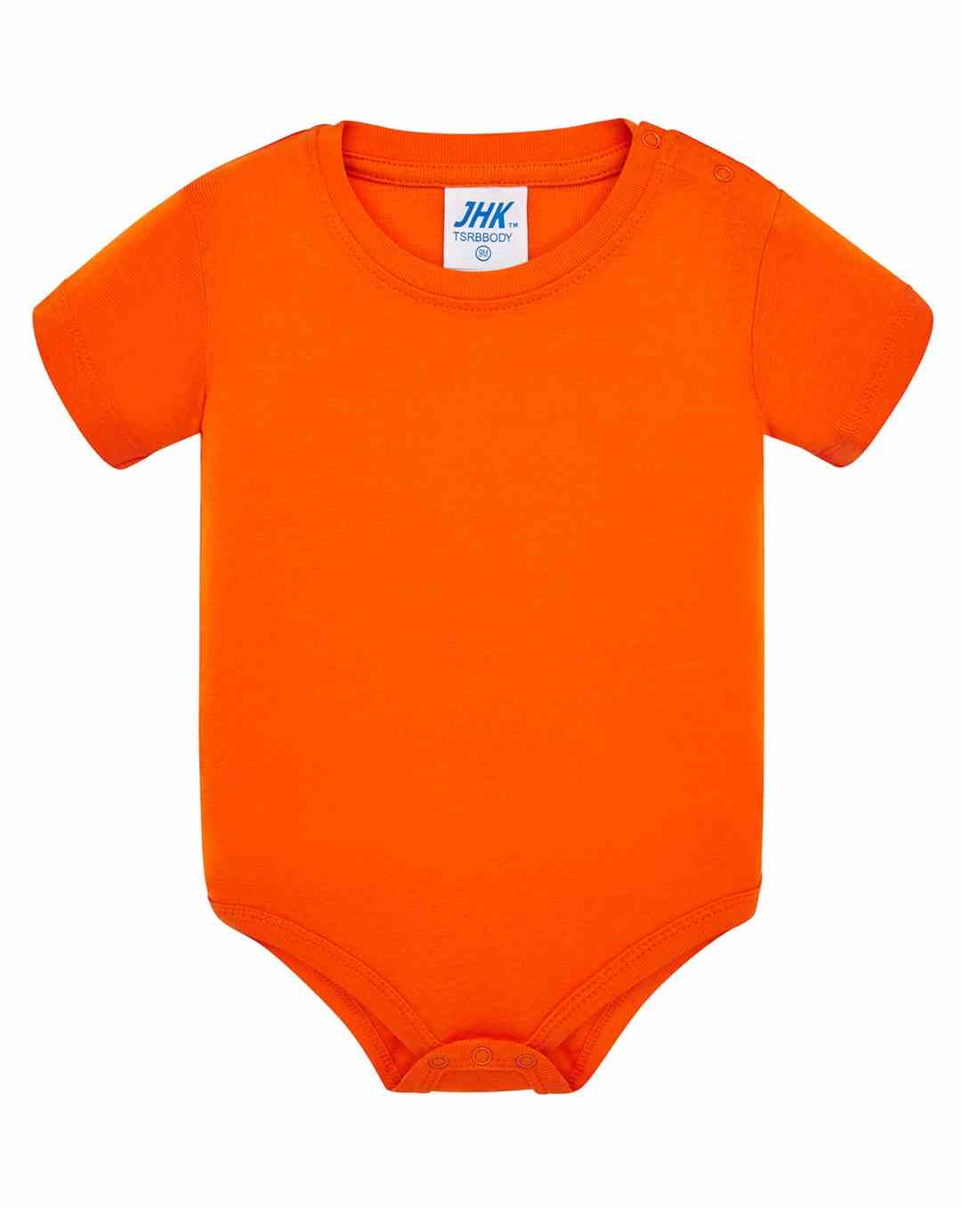 Body dziecięce z krótkim rękawem. Wykończenie pod szyją - lycrą. Zapinane na ramieniu i w kroku. Ściągacz 1x1. 100% bawełna.