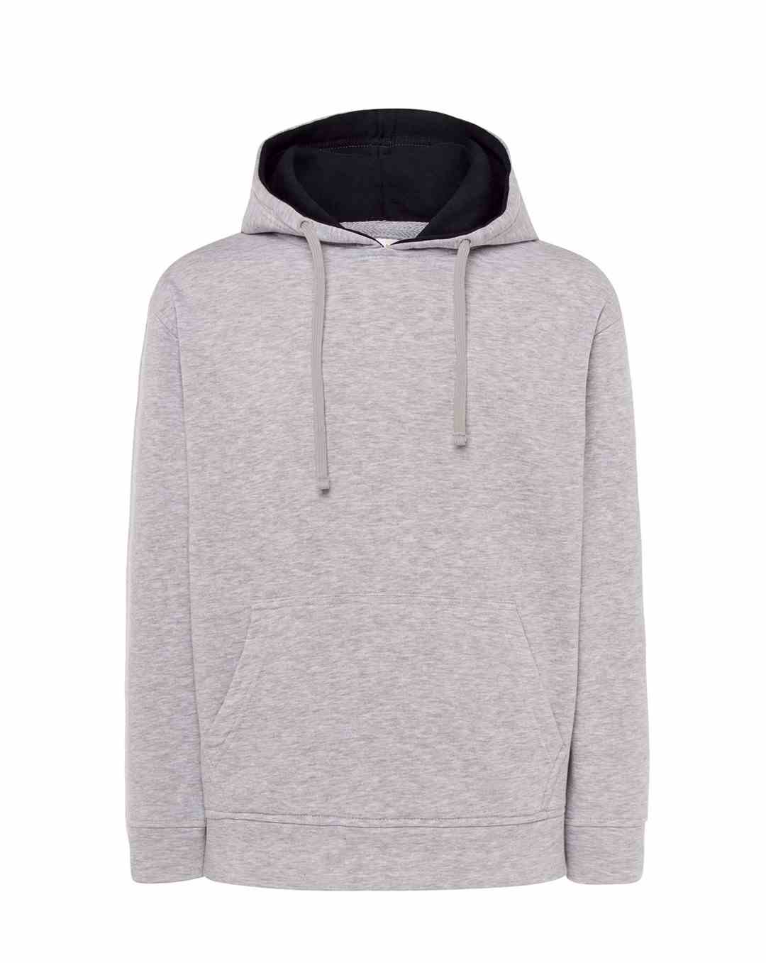 Wnętrze kaptura w kontrastowym kolorze. Sznurki w kolorze bluzy. Naszyta kieszeń kangurka. Ta sama tkanina z mankietami i lamówką. 35% bawełna - 65% poliester.