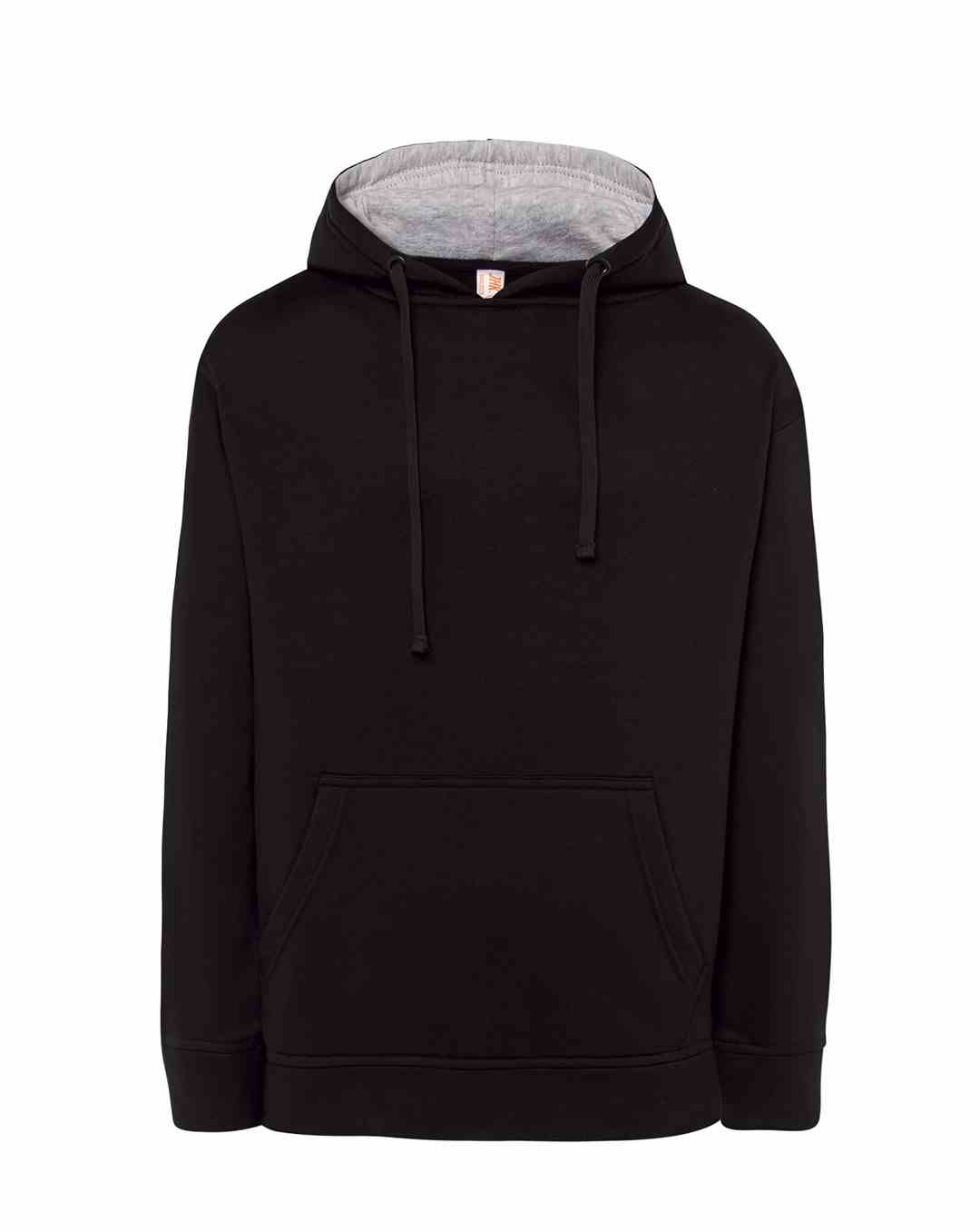 Wnętrze kaptura w kontrastowym kolorze. Sznurki w kolorze bluzy. Naszyta kieszeń kangurka. Ta sama tkanina z mankietami i lamówką. 35% bawełna - 65% poliester.