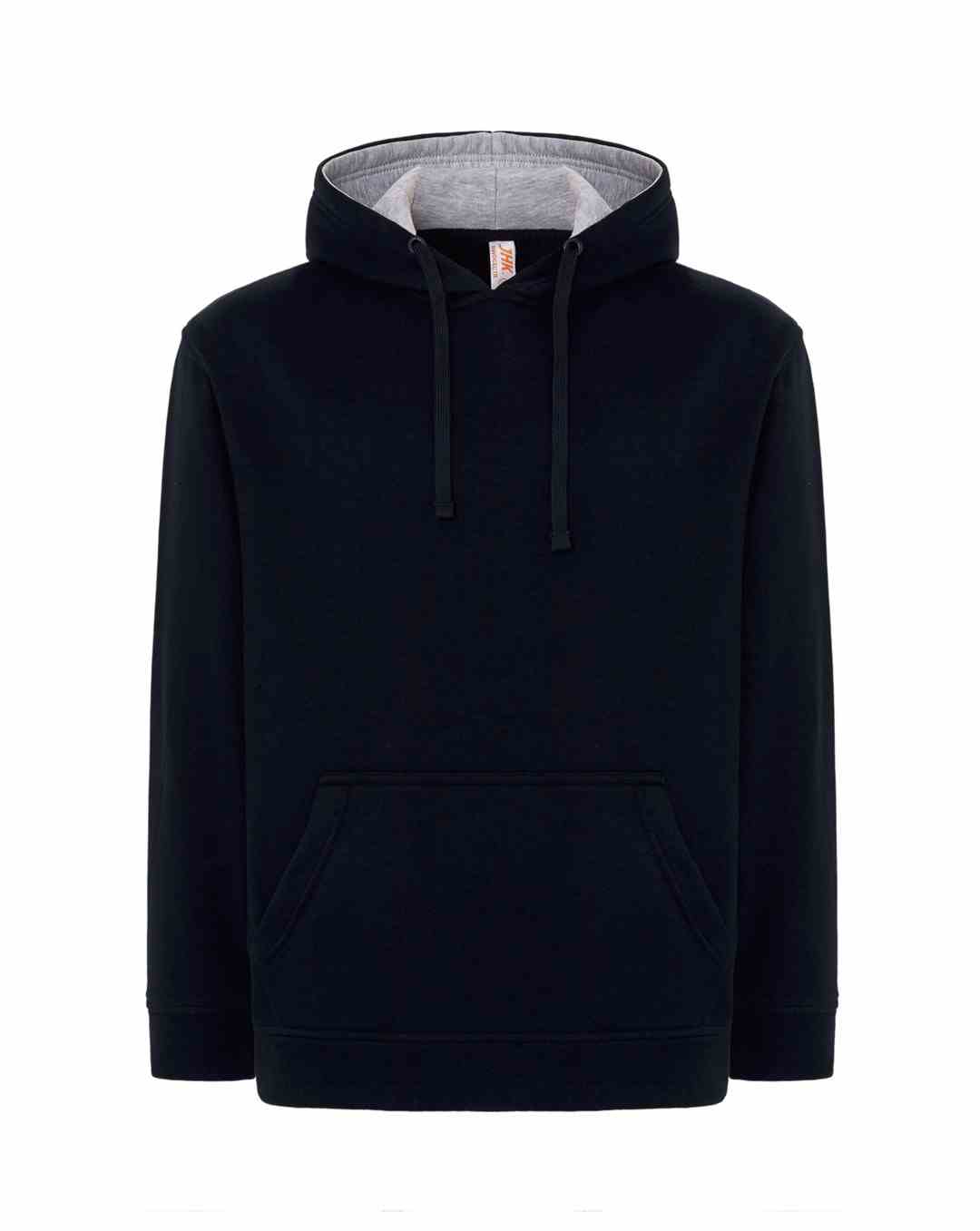 Wnętrze kaptura w kontrastowym kolorze. Sznurki w kolorze bluzy. Naszyta kieszeń kangurka. Ta sama tkanina z mankietami i lamówką. 35% bawełna - 65% poliester.
