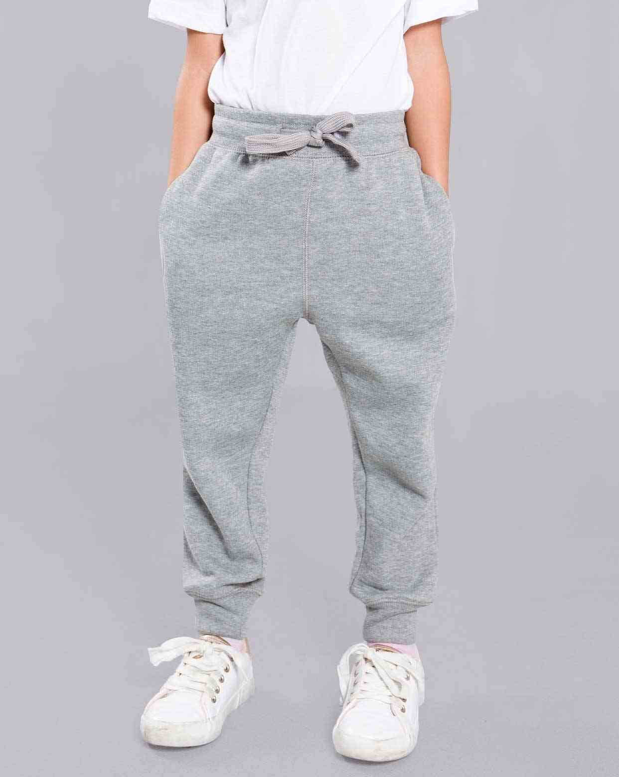 Długie spodnie sportowe dla dzieci, mankietami na dole i elastyczną talią z regulowanym sznurkiem.