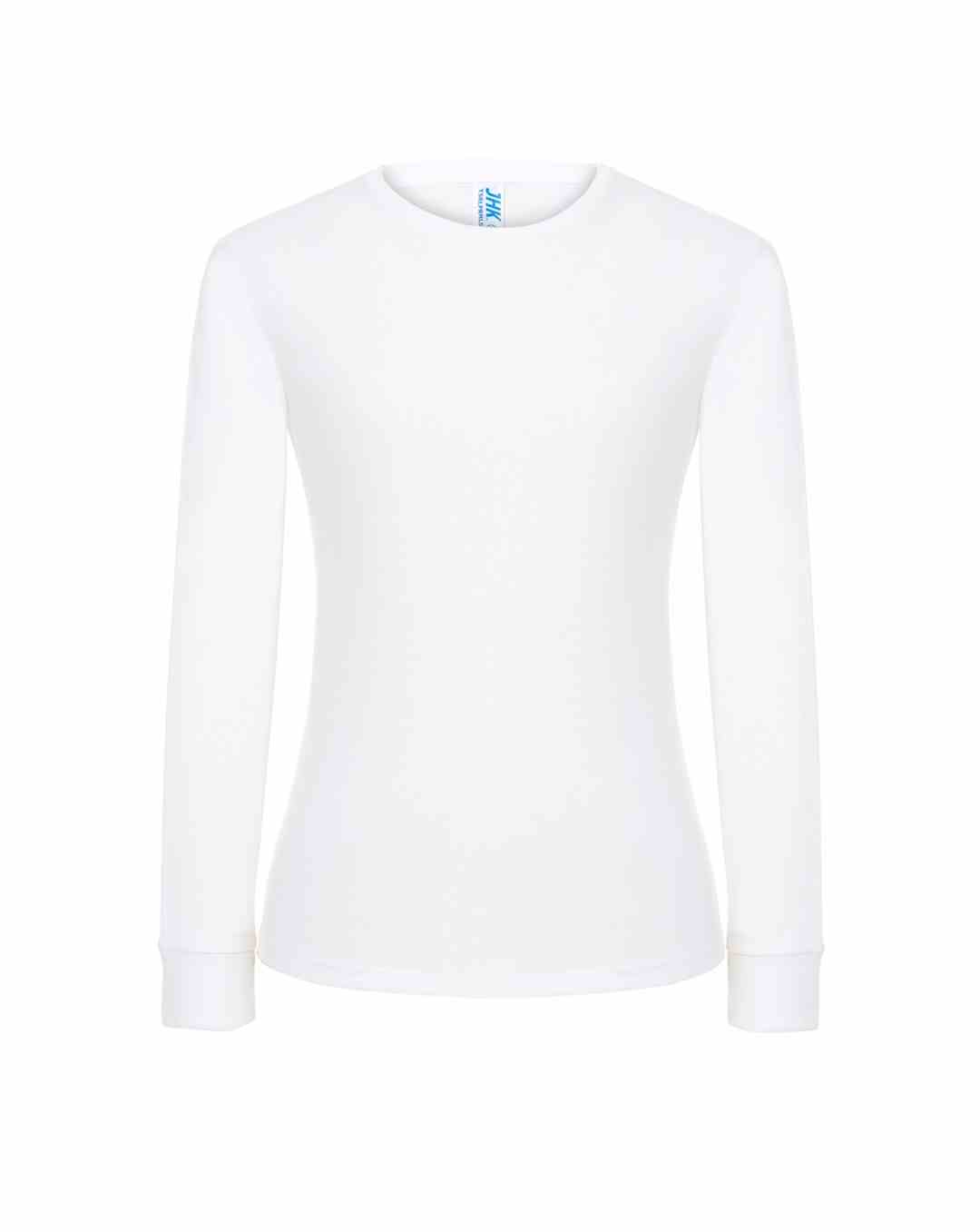 T-Shirt damski z długimi rękawami zakończonymi ściągaczem. Brak szwów bocznych. Wzmocniony lycrą ściągacz prążek1x1. 100% bawełna stabilizowana.