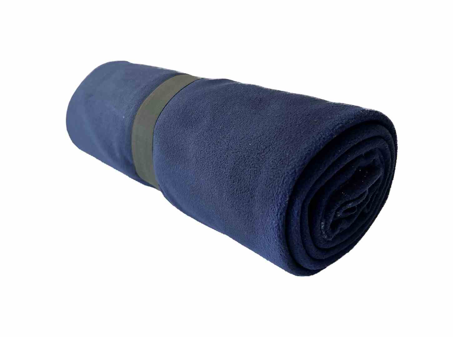 Koc wykonany z grubego polaru, gładkie nie obszywane brzegi koca, elastyczna guma zabezpieczająca przed rozwinięciem.