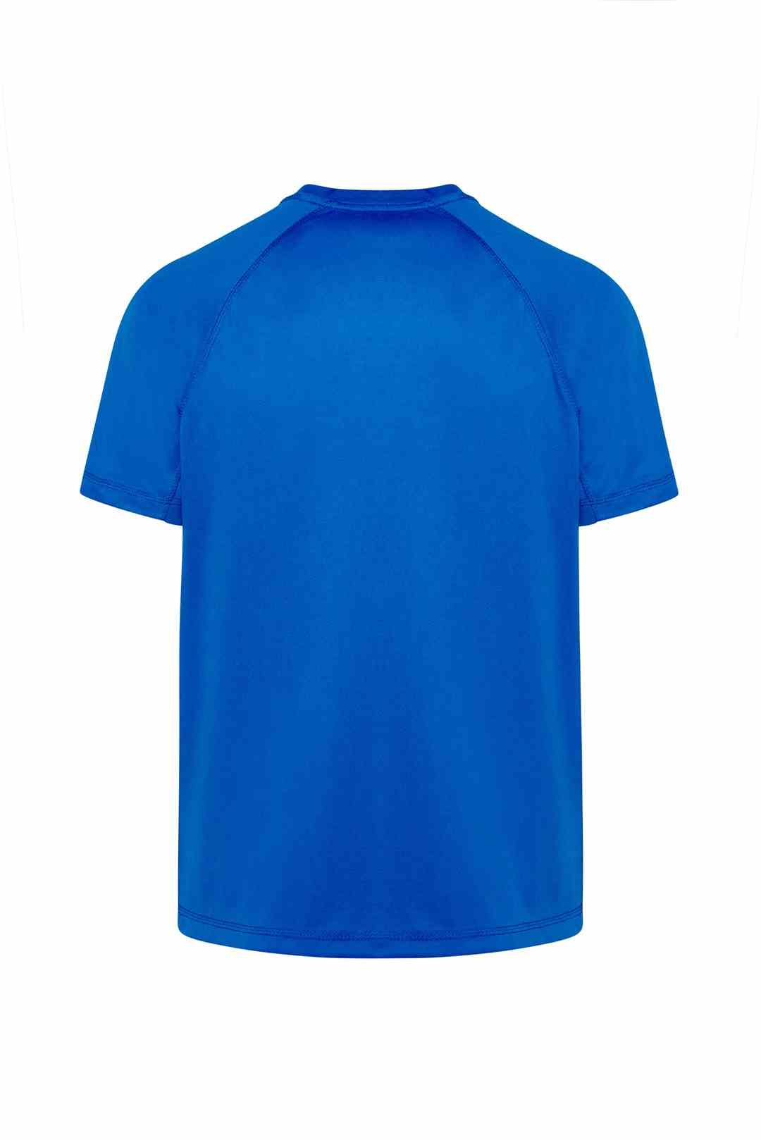T-shirt dziecięcy z krótkim rękawem. Reglanowy rękaw z ozdobnym przeszyciem. Oddychający materiał szybkoschnący. Łatwo usuwalna metka. 100% poliester teksturowany.