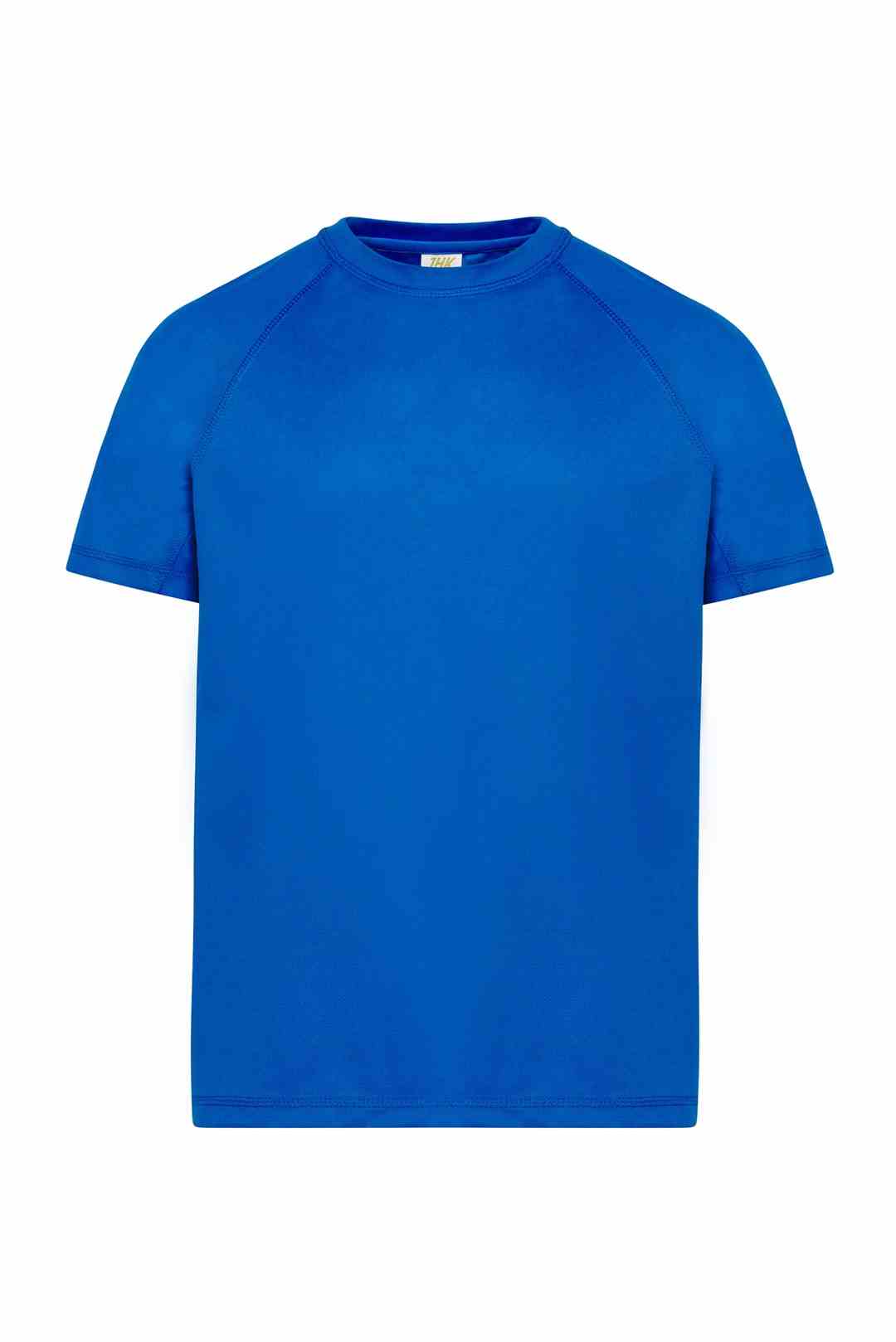 T-shirt dziecięcy z krótkim rękawem. Reglanowy rękaw z ozdobnym przeszyciem. Oddychający materiał szybkoschnący. Łatwo usuwalna metka. 100% poliester teksturowany.