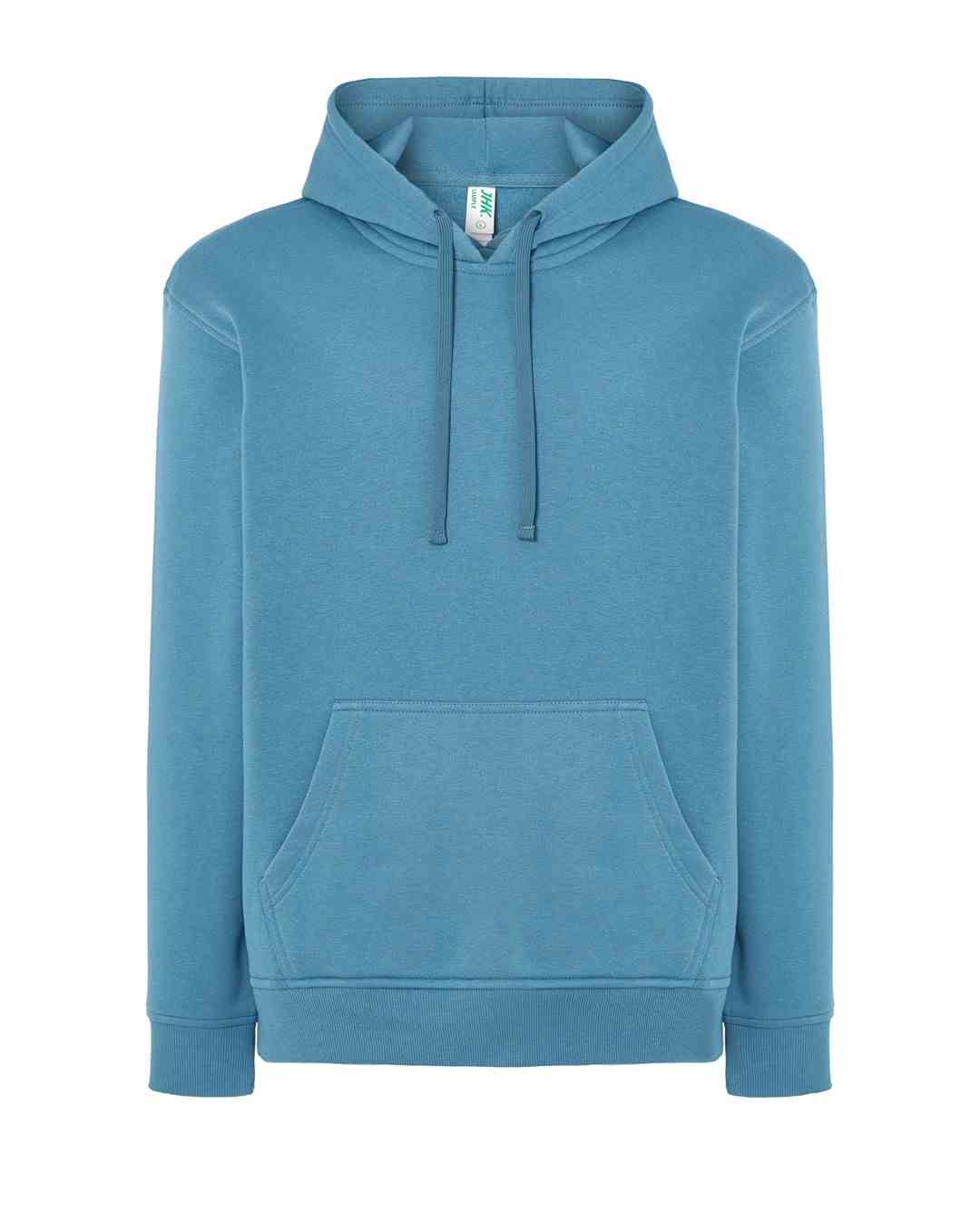 Bluza dresowa z kapturem. Naszywane kieszenie. Wzmocnione lycrą ściągacze. Sznurek ściagający w kapturze. 35% bawełna - 65% poliester.
