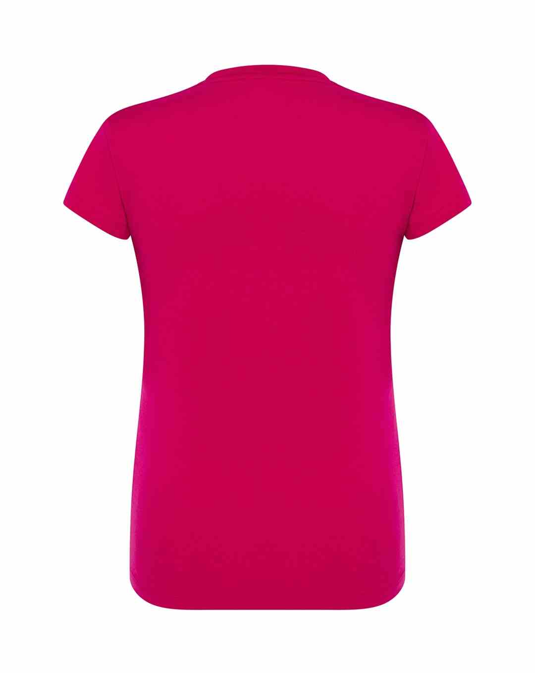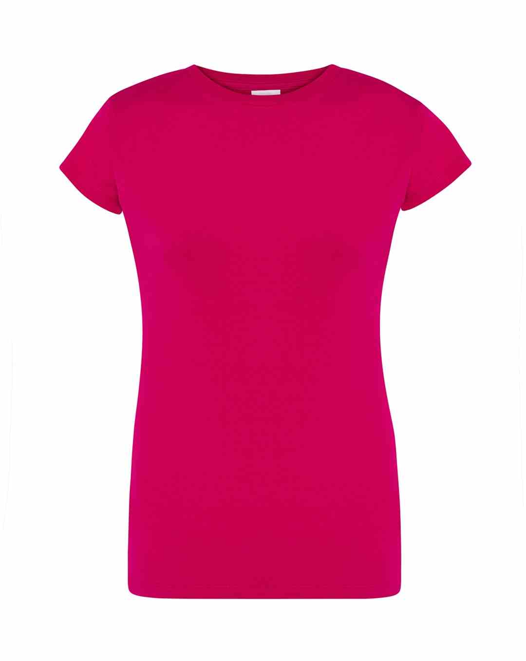 T-shirt damski z krótkim rękawem. Krój dopasowany do sylwetki. Ściągacz przy szyi. Szwy boczne. Podwójne szwy na ramionach i spodzie koszulki.  Łatwo usuwalna metka. 100 % bawełna.