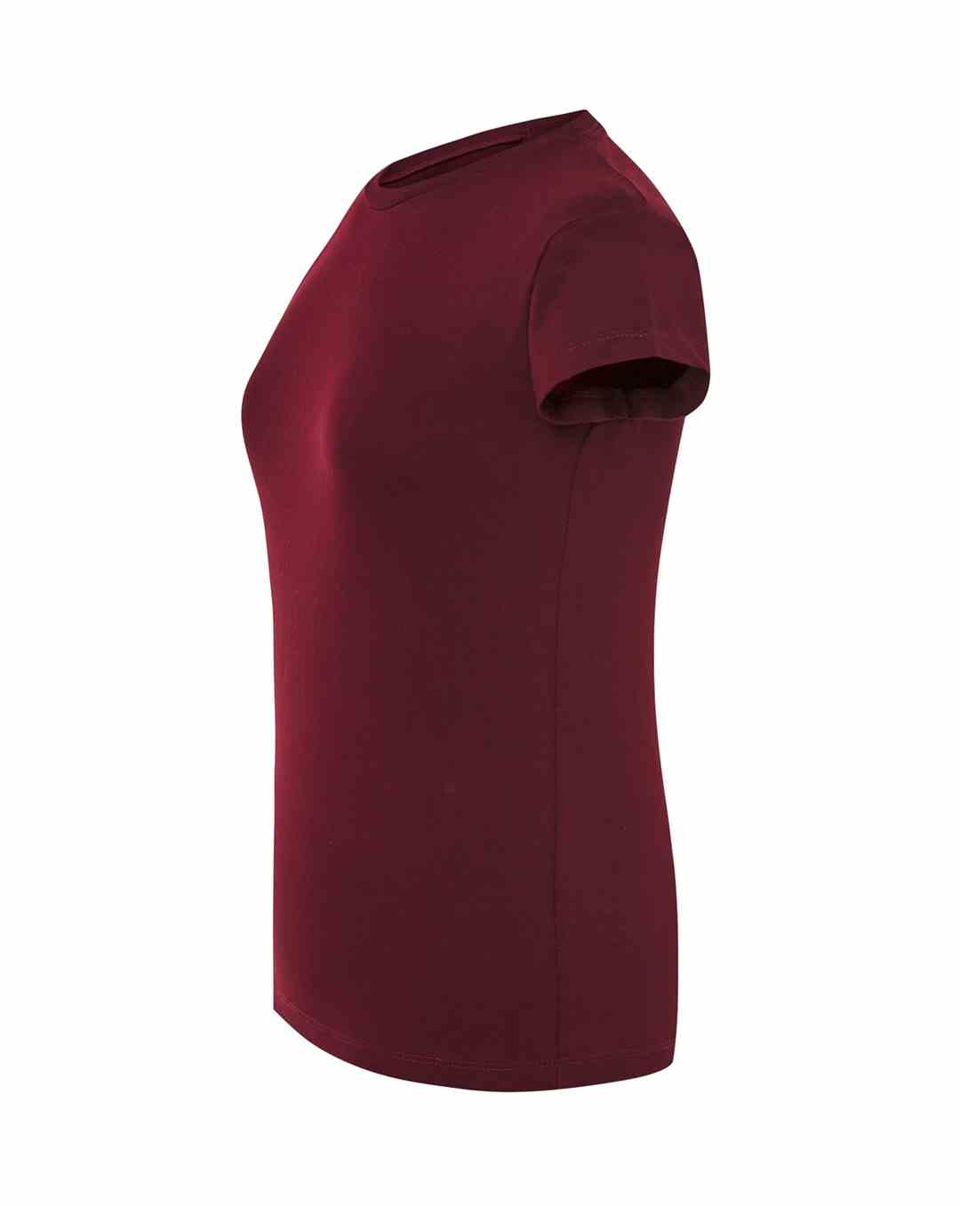 T-shirt damski z krótkim rękawem. Krój dopasowany do sylwetki. Ściągacz przy szyi. Szwy boczne. Podwójne szwy na ramionach i spodzie koszulki.  Łatwo usuwalna metka. 100 % bawełna.