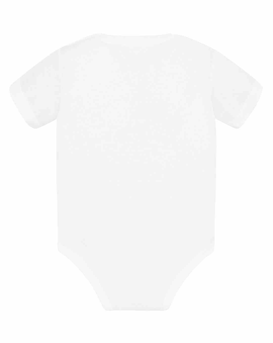 Body dziecięce z krótkim rękawem. Wykończenie pod szyją - lycrą. Zapinane na ramieniu i w kroku. Ściągacz 1x1. 100% bawełna.