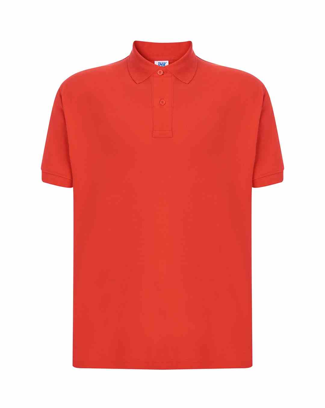 Polo męskie z krótkim rękawem. Zapinane na dwa guziki. Kołnierzyk i rękawy wykończone dzianiną 1x1. Boczne rozcięcia. 100% stabilizowana bawełna czesankowa pique.