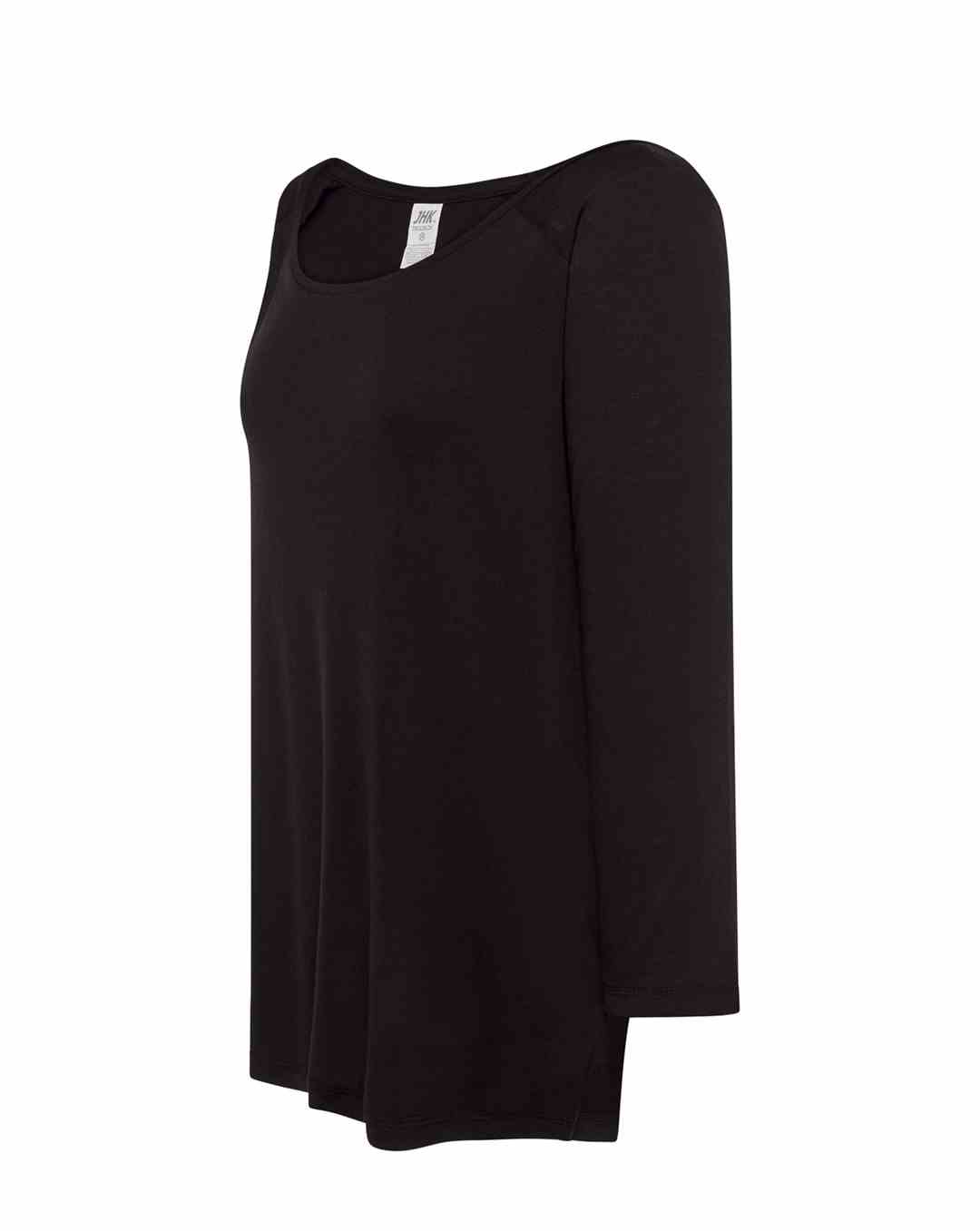 Bluzka damska z rękawkami 3/4 typu reglan. Szeroki, okrągły dekotl. Single jersey.