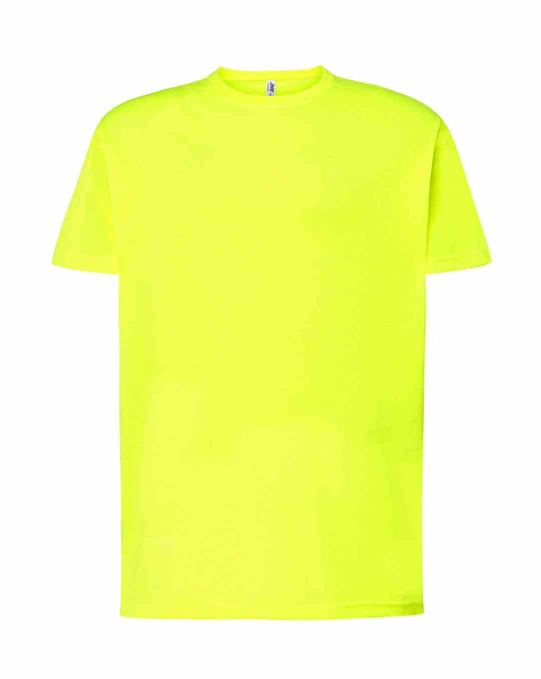 T-shirt męski z krótkim rękawem. Brak bocznych szwów. Podwójne szwy na ramionach. Wzmocniony lycrą ściągacz. Taśma wzmacniająca. 100% bawełna stabilizowana.